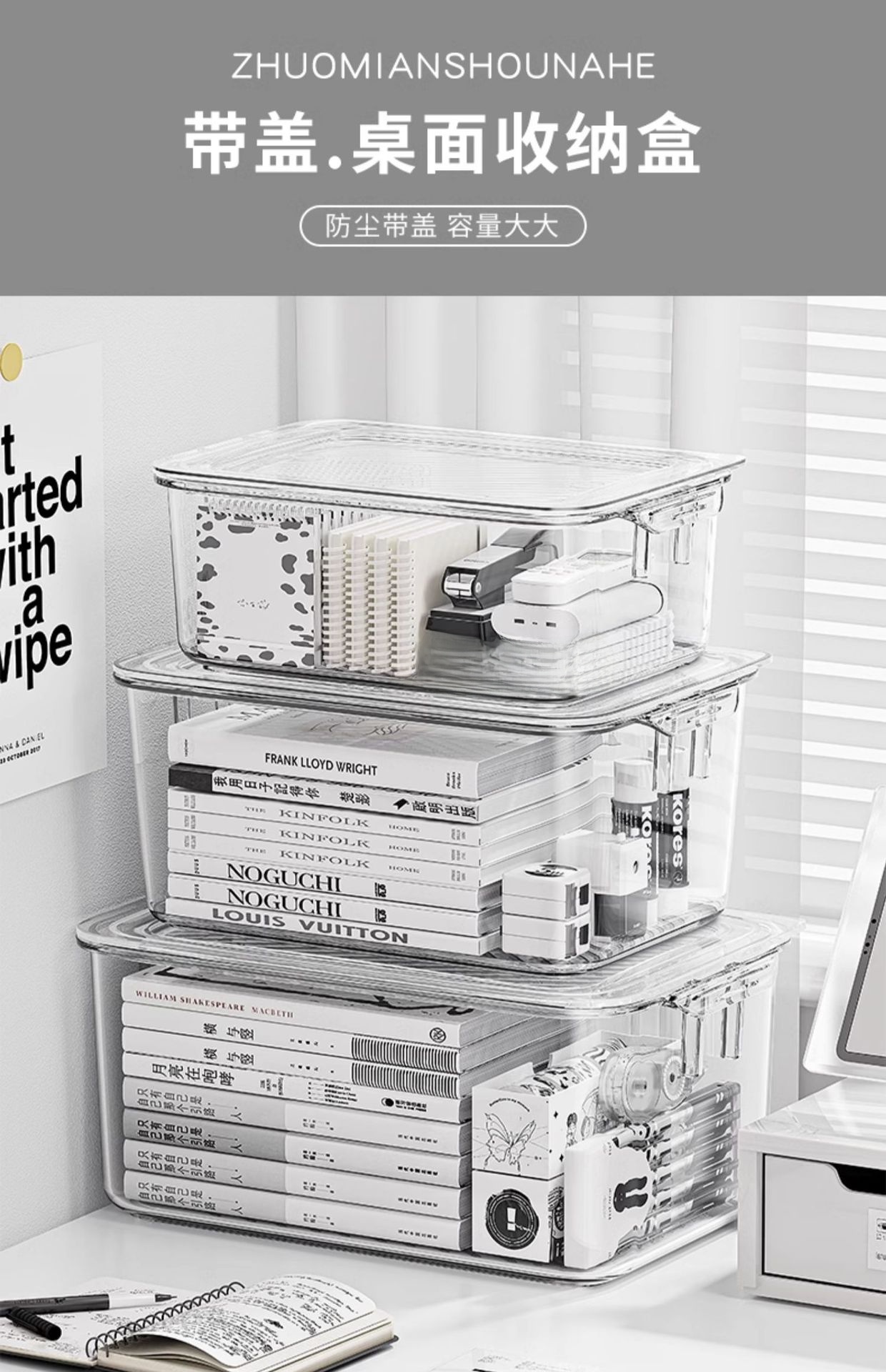 데스크탑 보관함 아크릴 보관함 투명 방진 뚜껑 정리 사무실 책상 문구 책상 작은 잔해물