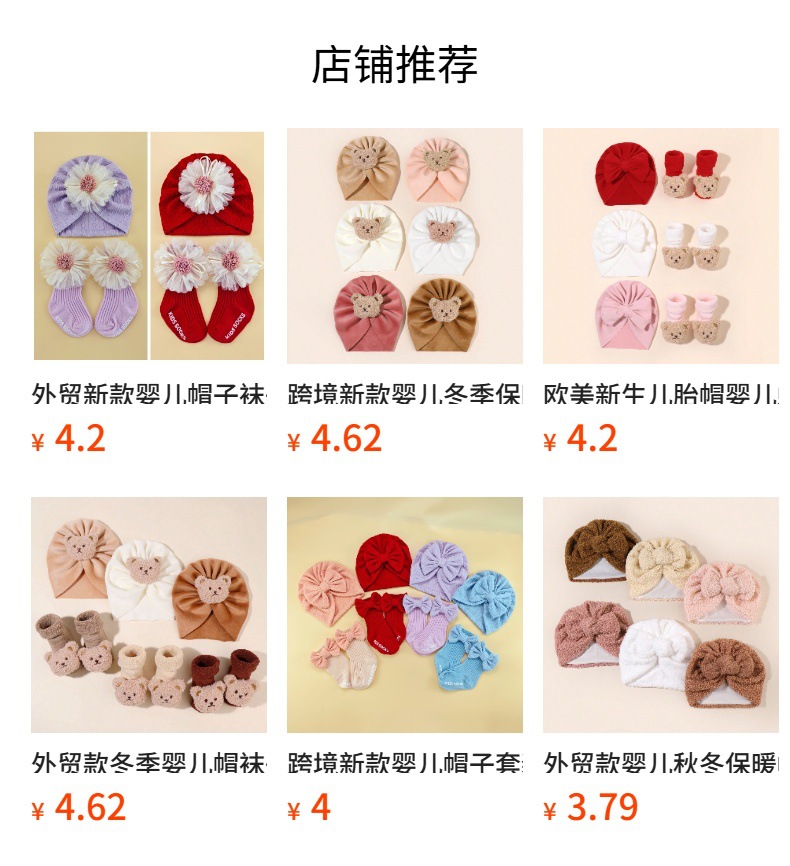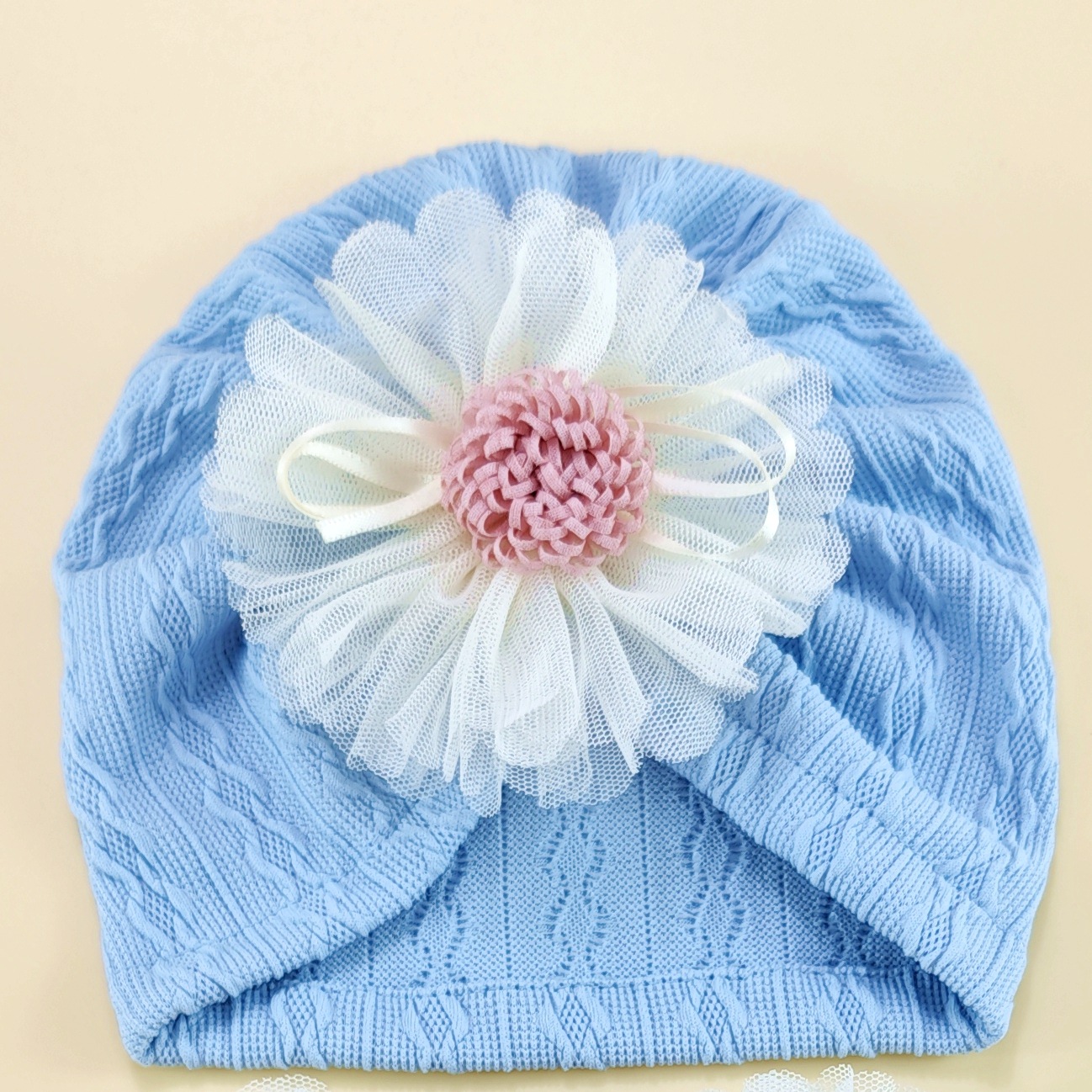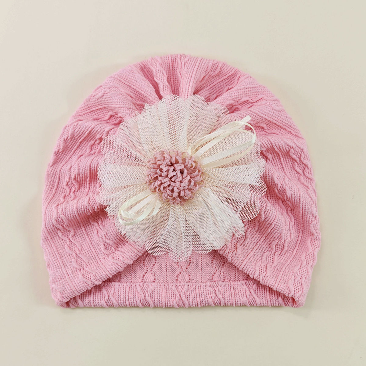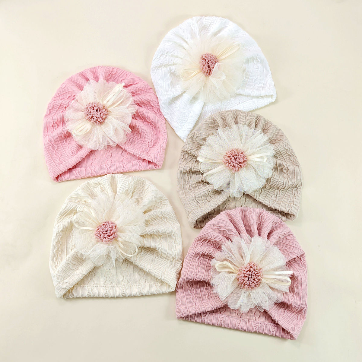 跨境新款婴儿帽弹性提花宝宝帽子护卤门婴儿帽子新生儿可爱花朵帽