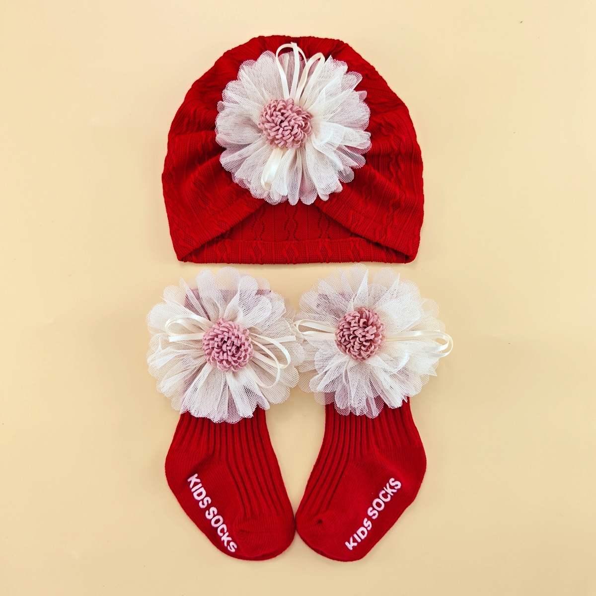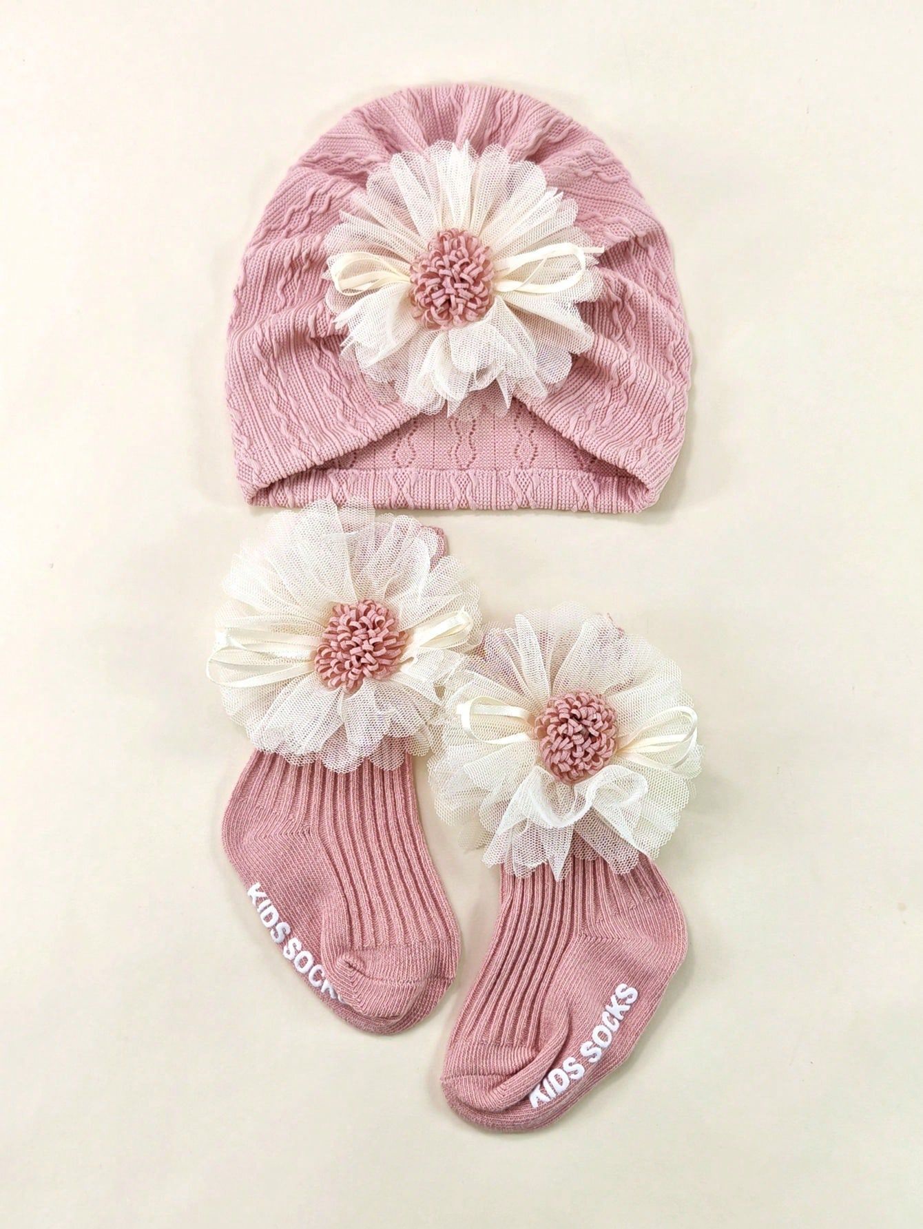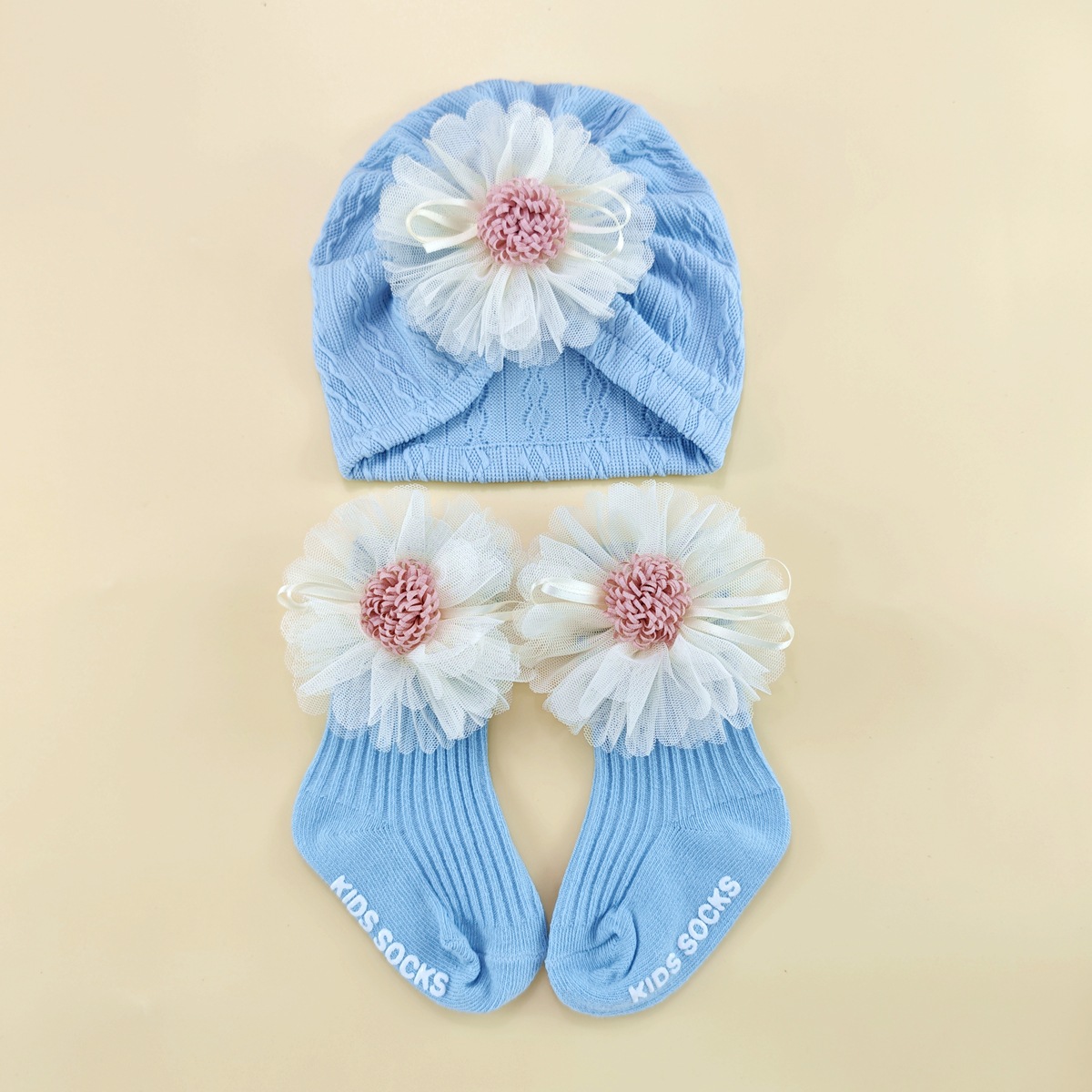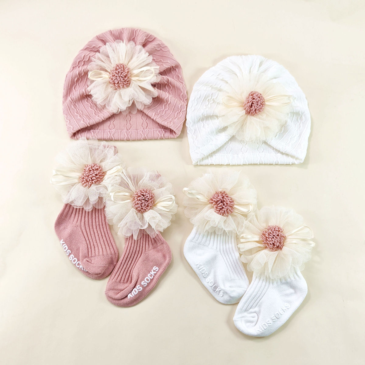跨境新款婴儿帽弹性提花宝宝帽子护卤门婴儿帽子新生儿可爱花朵帽
