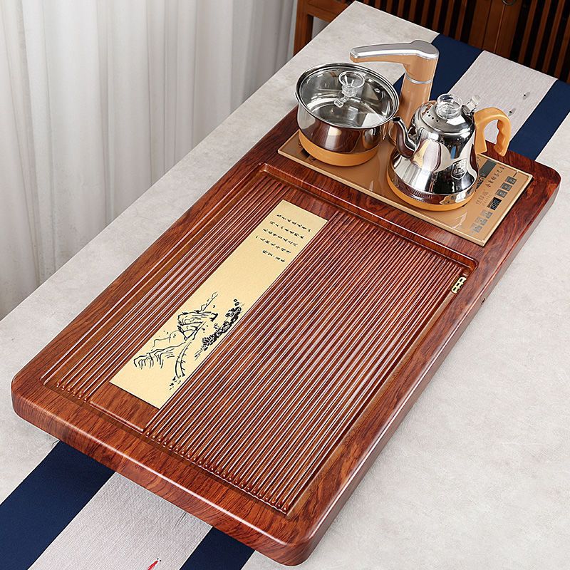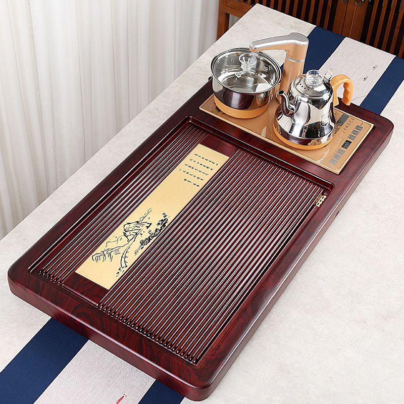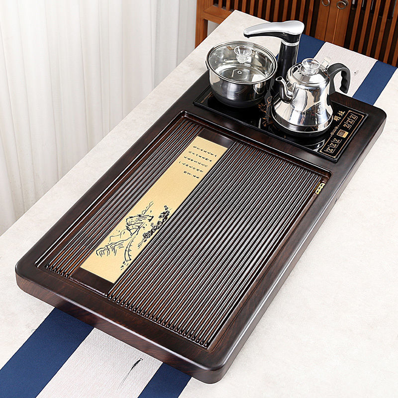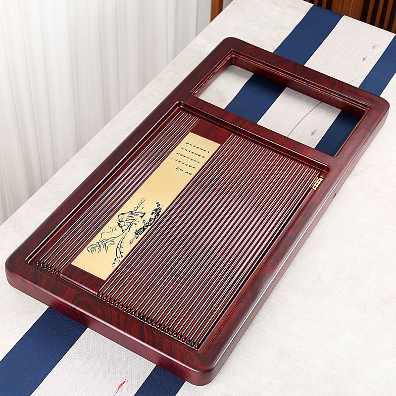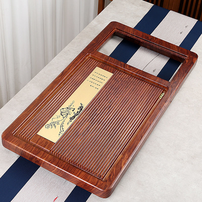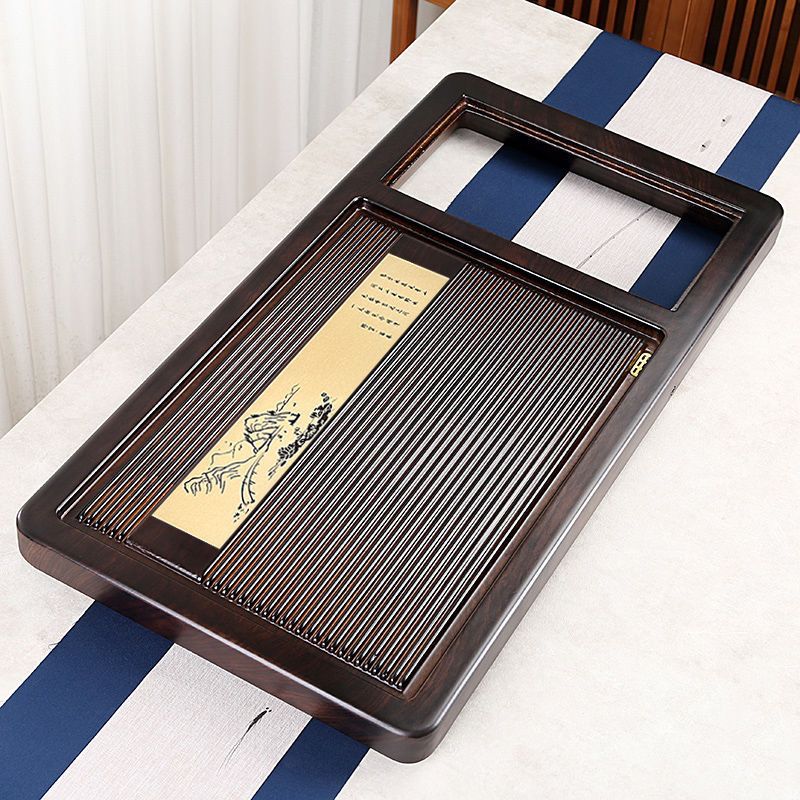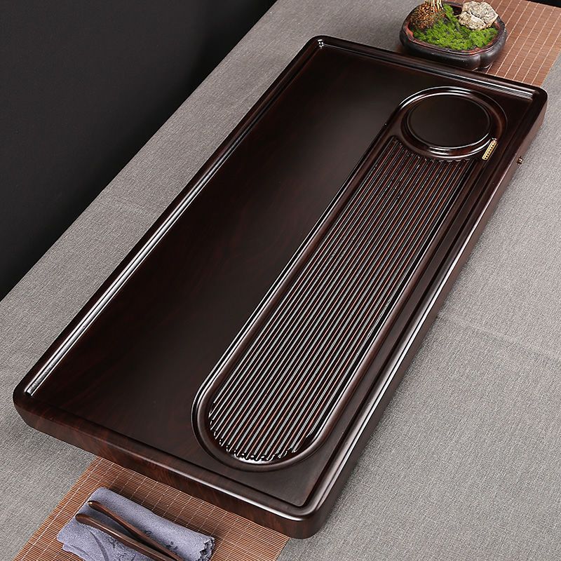 Ebony 솔리드 우드 티 트레이 가정용 새로운 간단한 대형 배수 사무실 전체 모방 로그 트레이 티 테이블스토어 가기