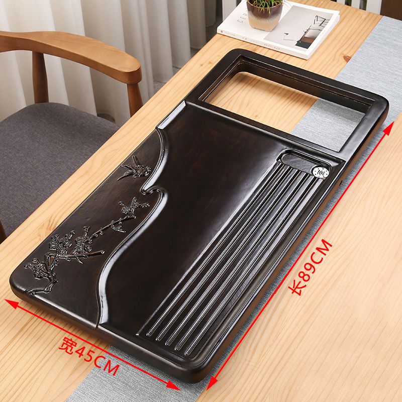 Ebony 솔리드 우드 티 트레이 가정용 새로운 간단한 대형 배수 사무실 전체 모방 로그 트레이 티 테이블