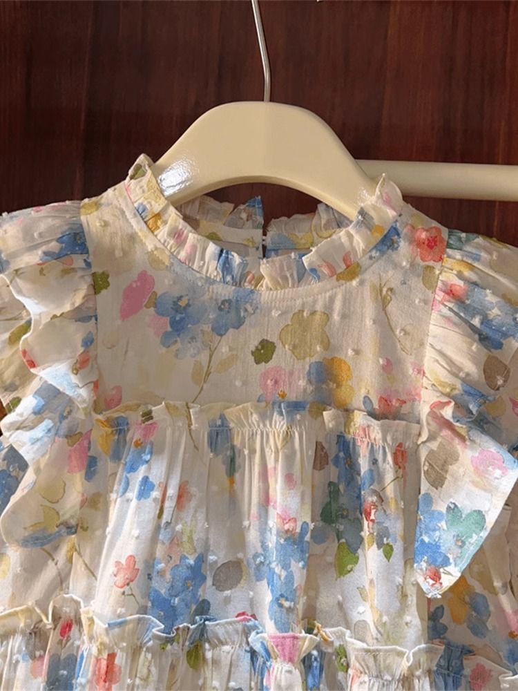 소녀의 세련된 셔츠 2025 여름 꽃 새 인형 달콤한 어린 소녀의 여름 두 조각 세트 세트 유행스토어 가기
