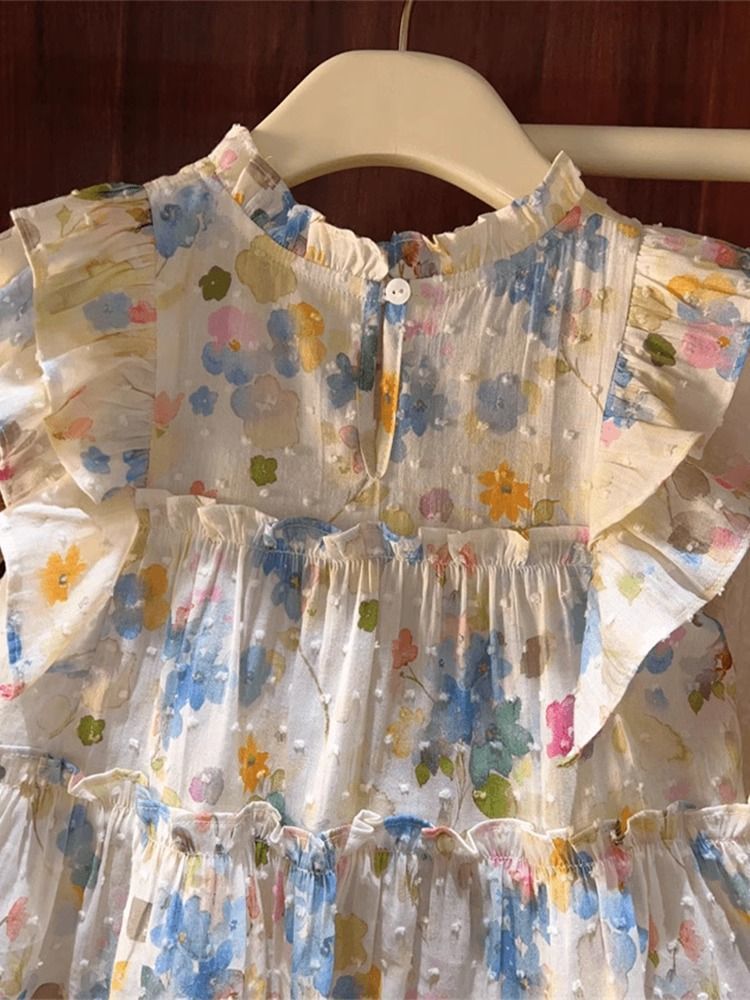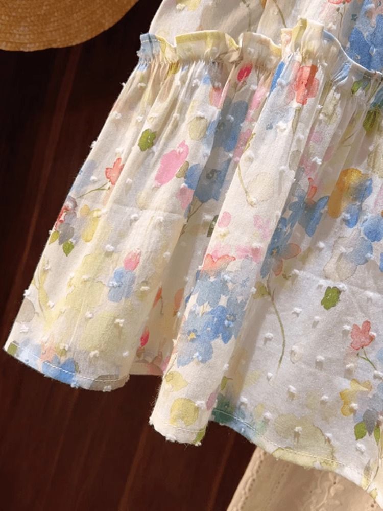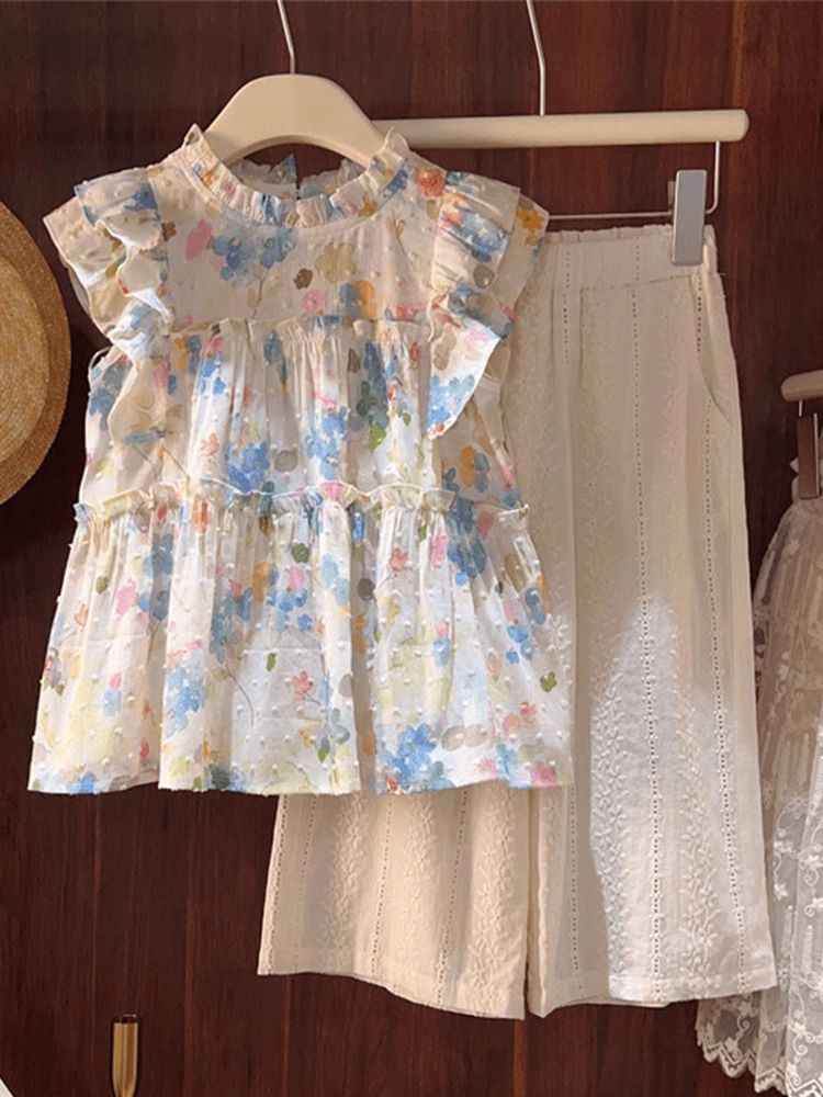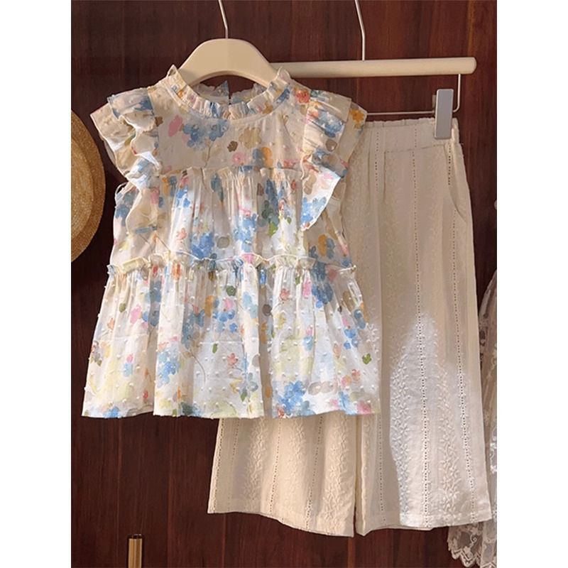 소녀의 세련된 셔츠 2025 여름 꽃 새 인형 달콤한 어린 소녀의 여름 두 조각 세트 세트 유행