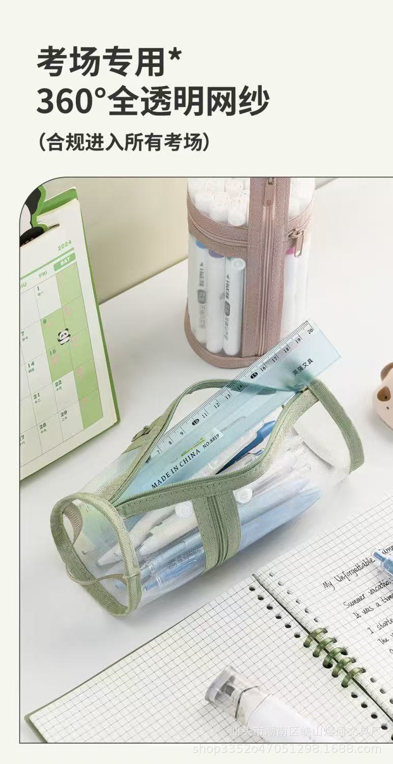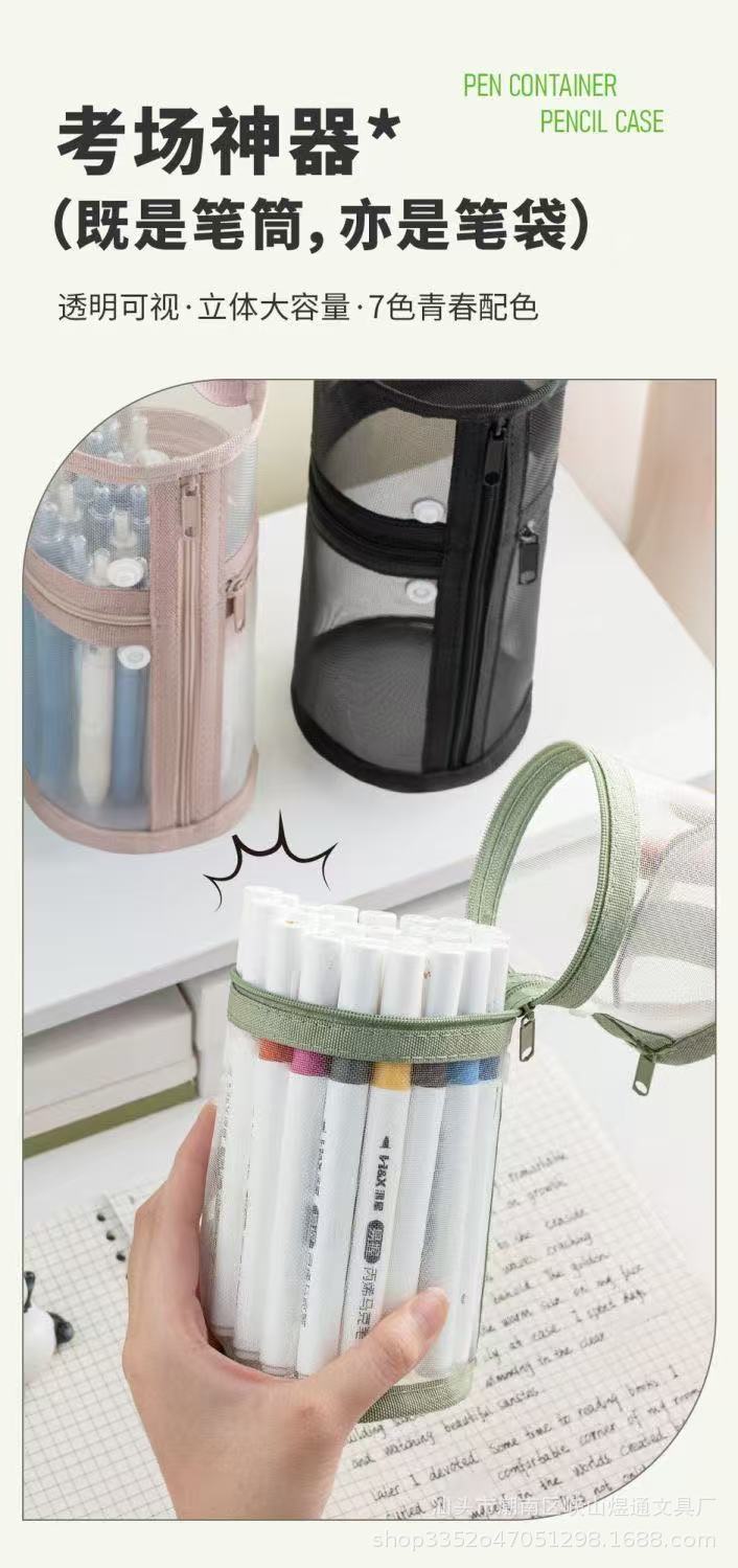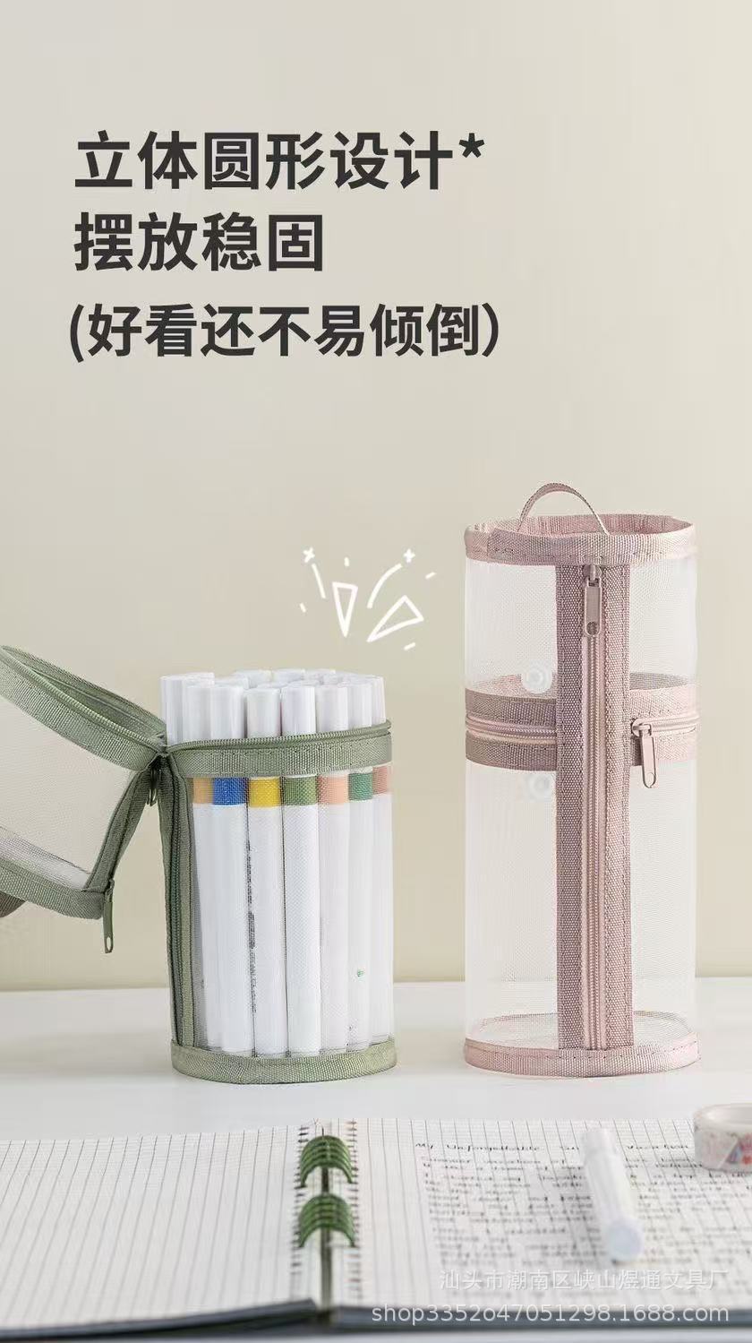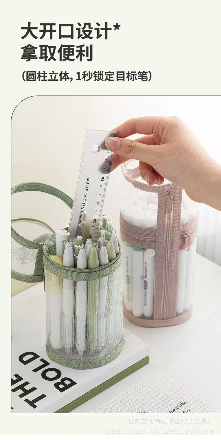 학생용 메쉬 고급 원통형 필통, 대용량 투명 수납 필통, 간이 펜홀더형 필통스토어 가기