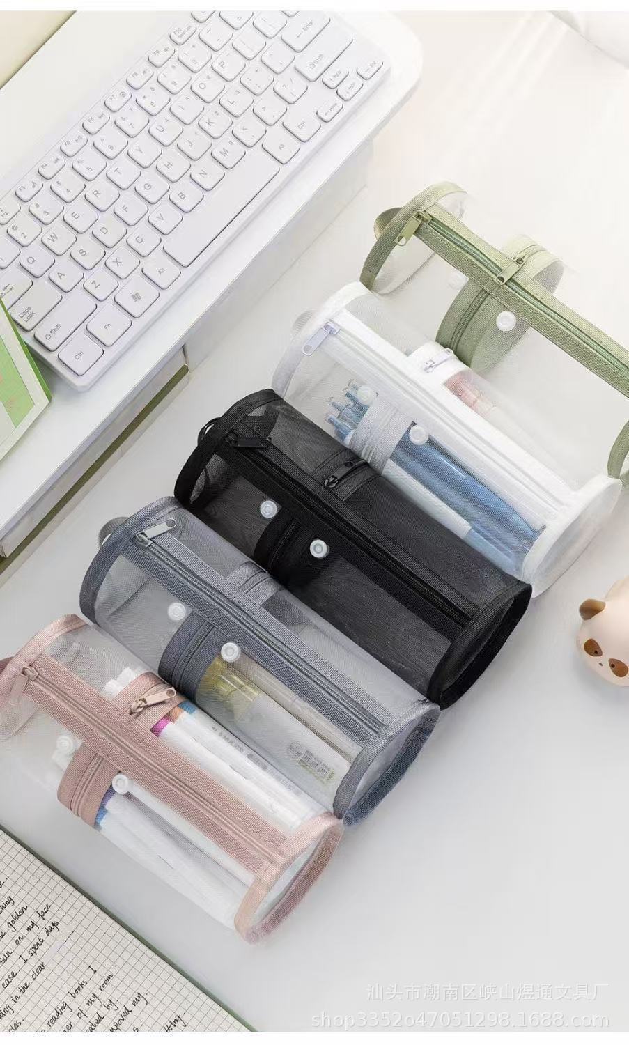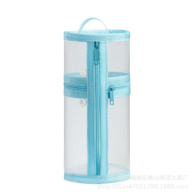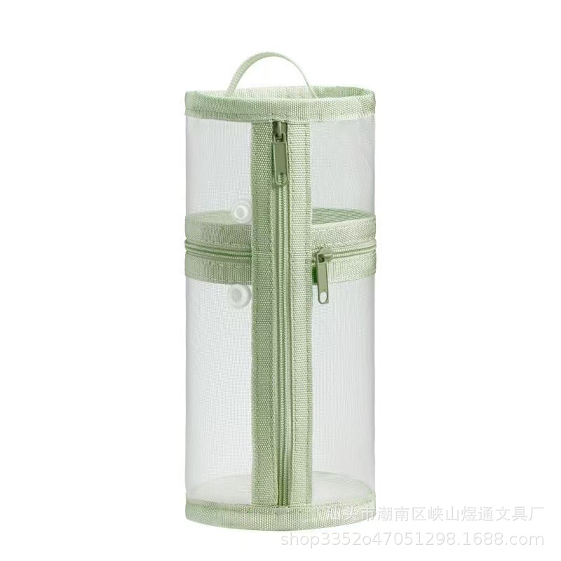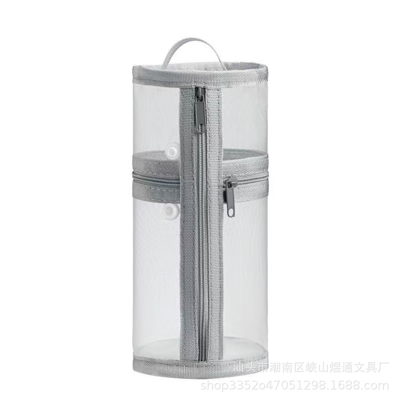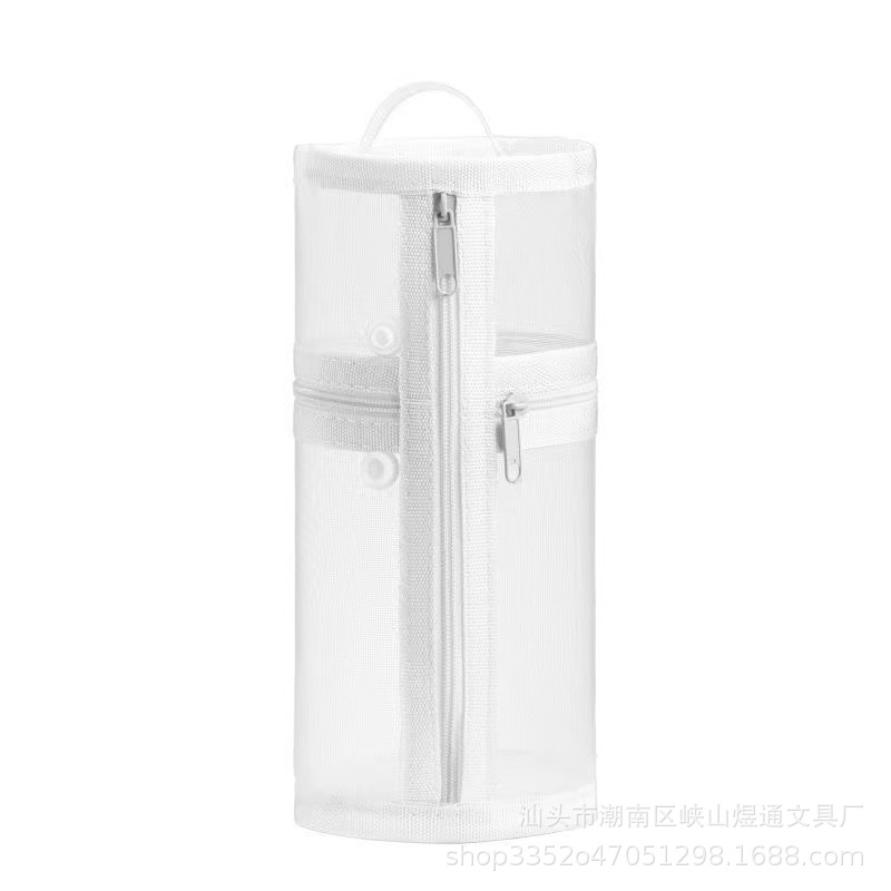 학생용 메쉬 고급 원통형 필통, 대용량 투명 수납 필통, 간이 펜홀더형 필통