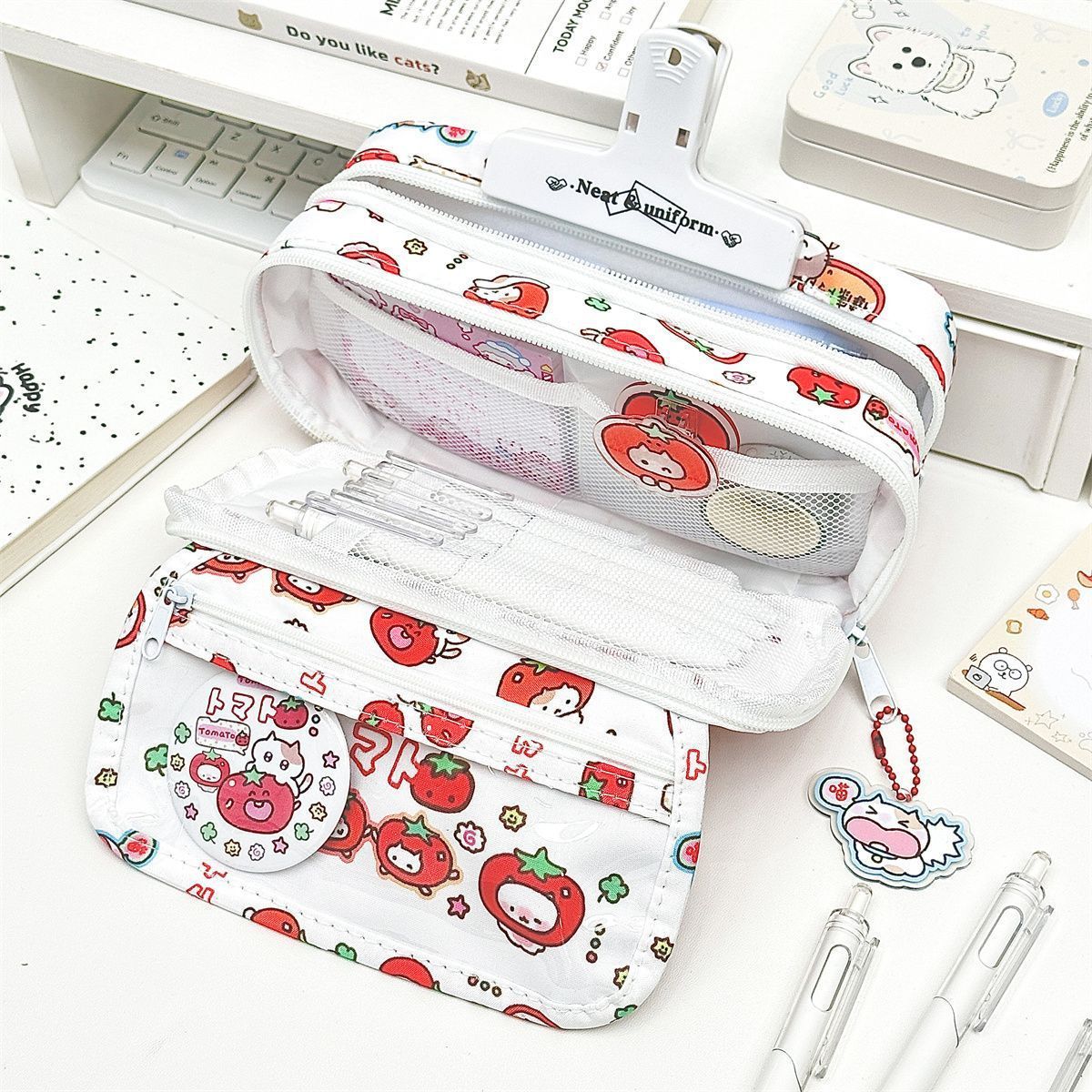 플립 토마토 새끼 고양이 통증 가방 연필 가방 Ins 만화 높은 가치의 문구 가방 학생 대용량 연필 케이스 보관