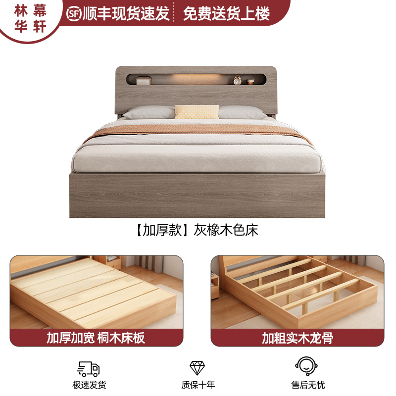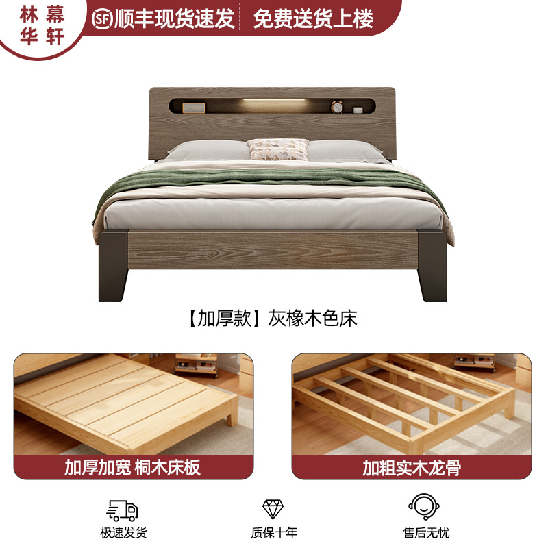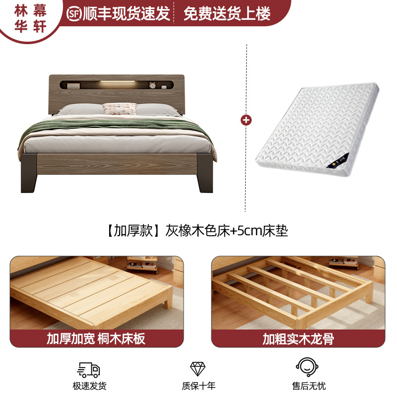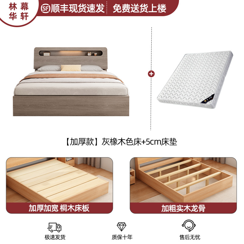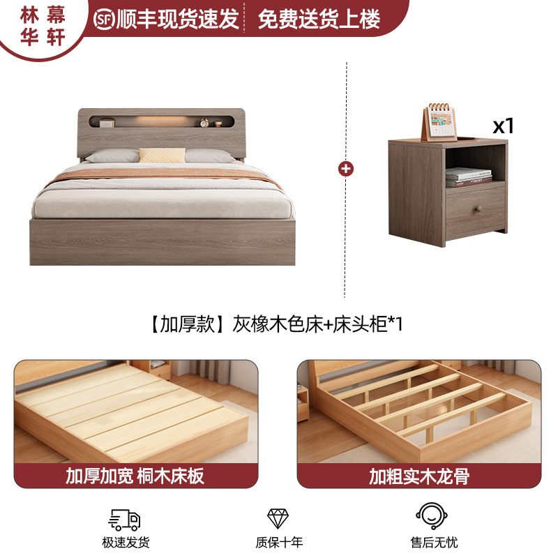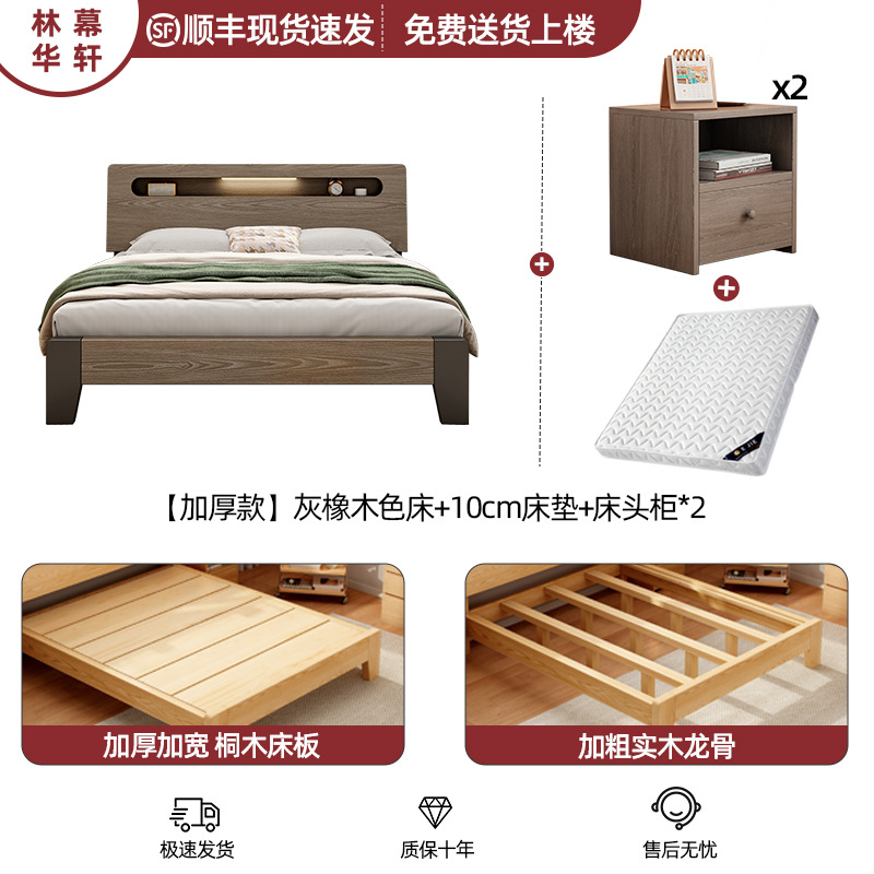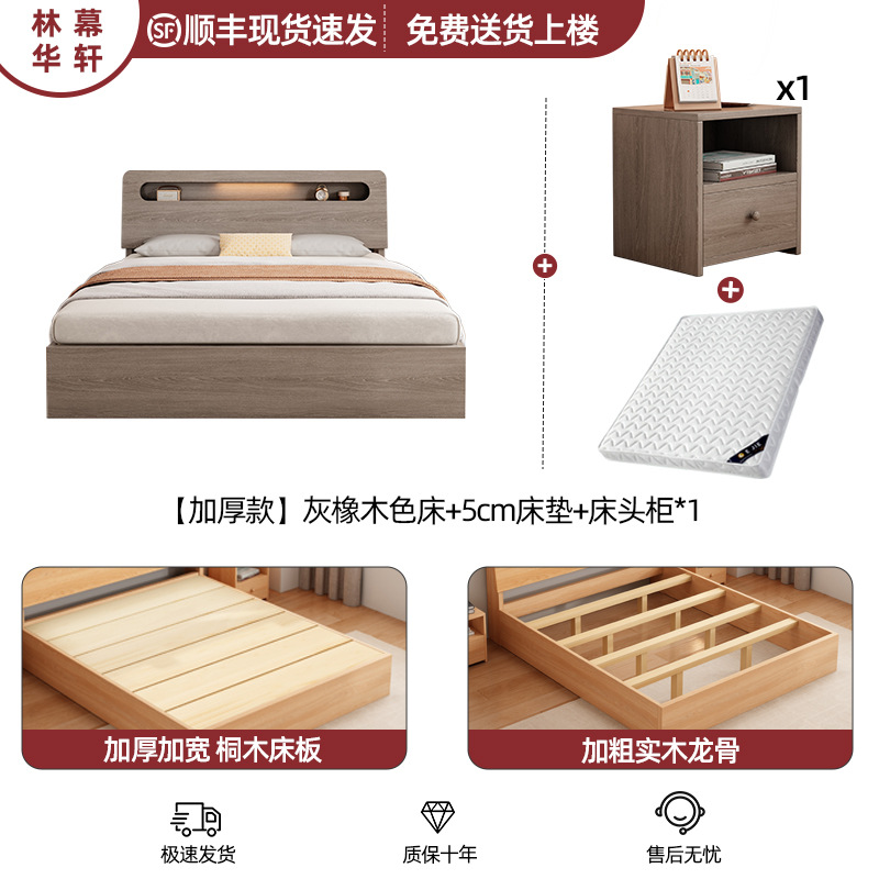 • [오동나무 판자] 플로어 스탠딩 그레이 오크 싱글 침대 + 10CM 코코넛 야자 매트리스 + 침대 옆 테이블 * 1 [집으로 배송]