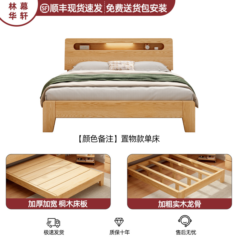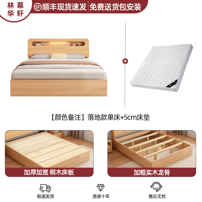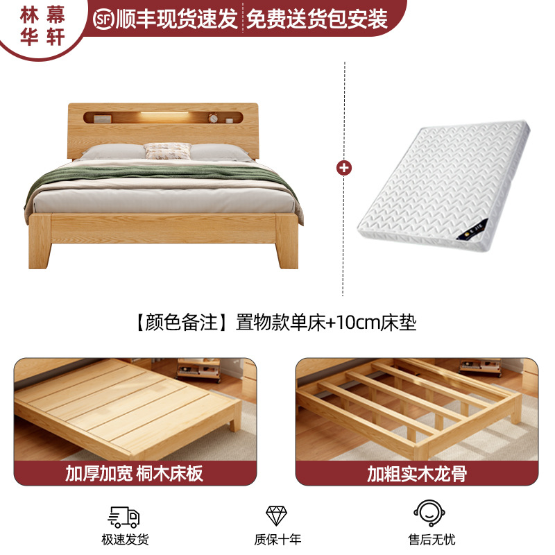 • [오동나무 판자] 바닥에서 천장까지 이어지는 원목 컬러 싱글 침대 + 5CM 코코넛 야자 매트리스 + 침대 옆 탁자 * 1 [집으로 배송]