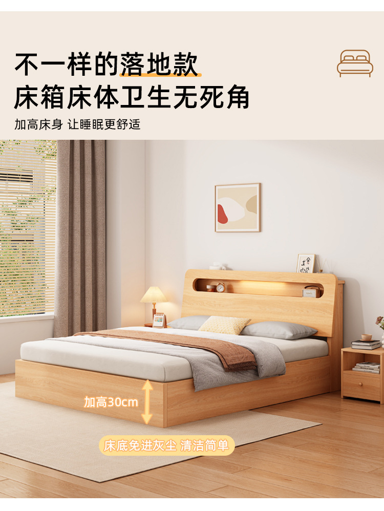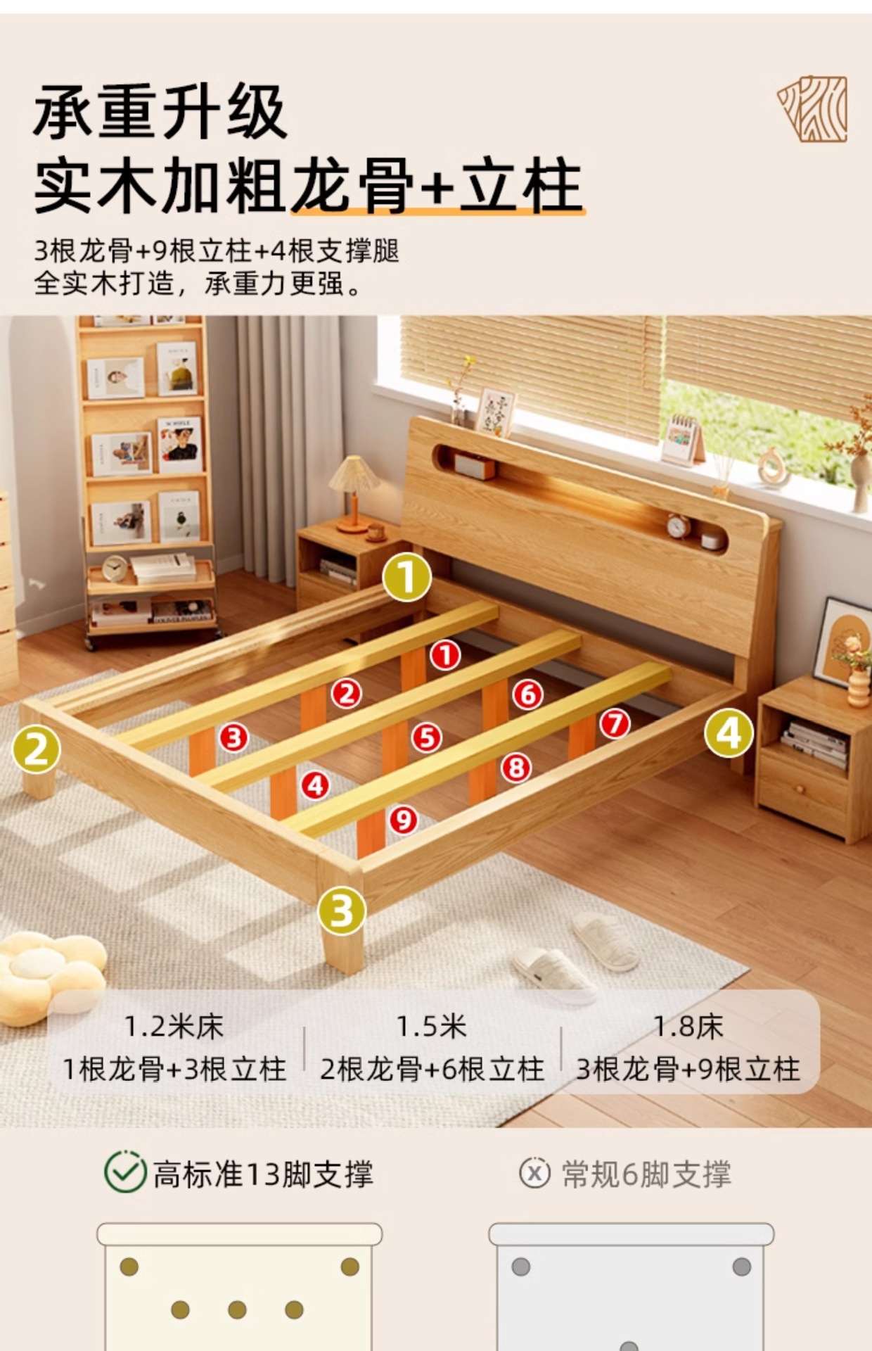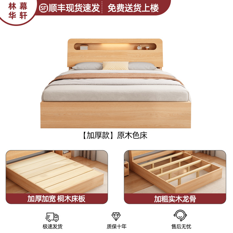 침대 원목 침대 더블 1.8m 침대 프레임 두꺼운 뼈대 침실 홈 1.5m 임대실용 싱글 침대스토어 가기
