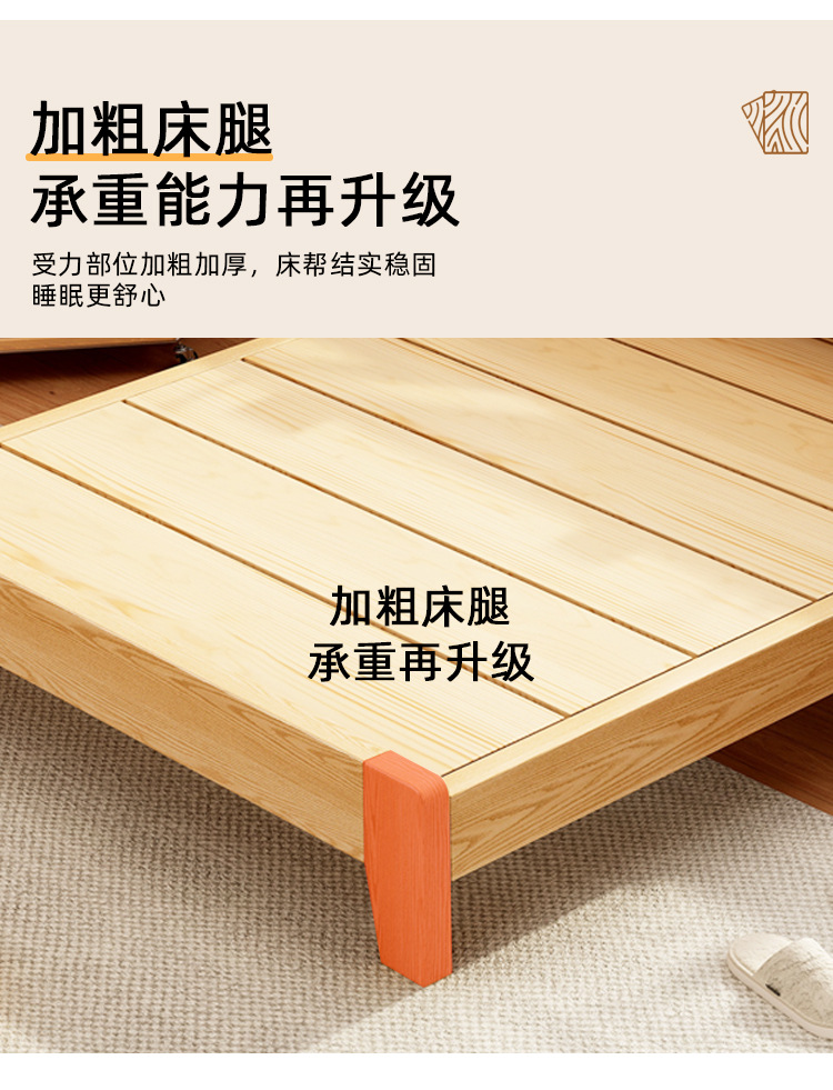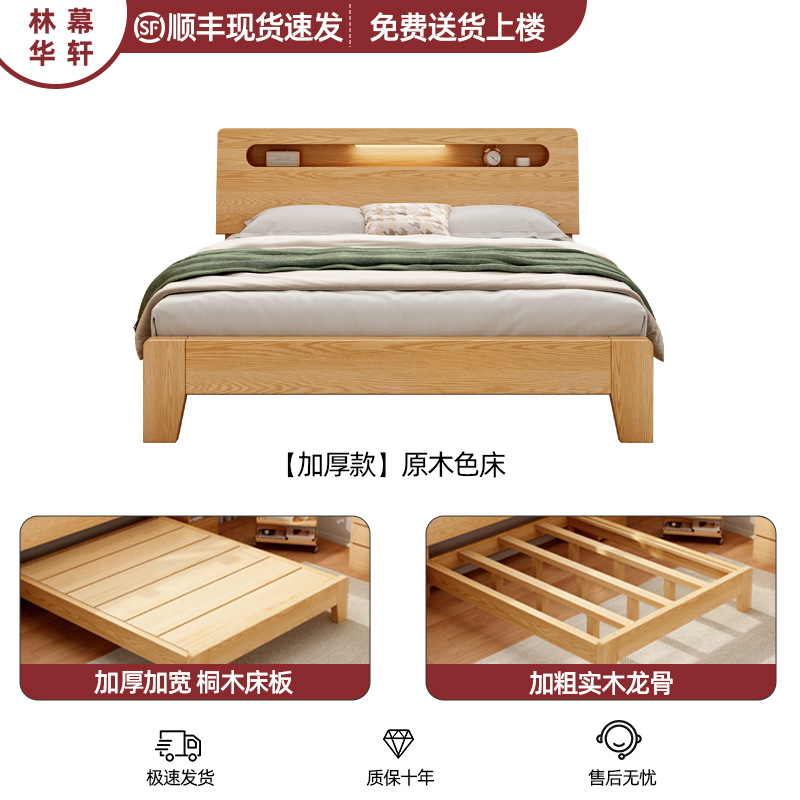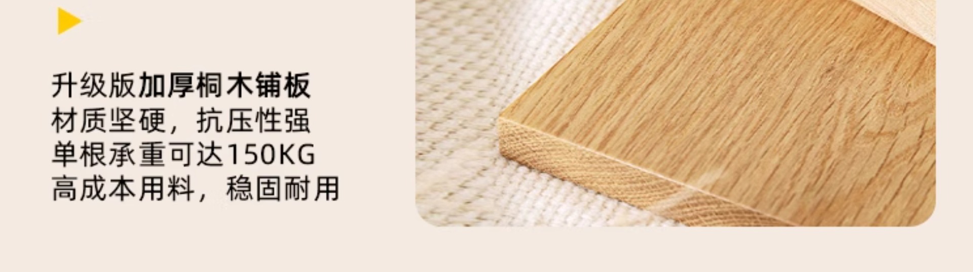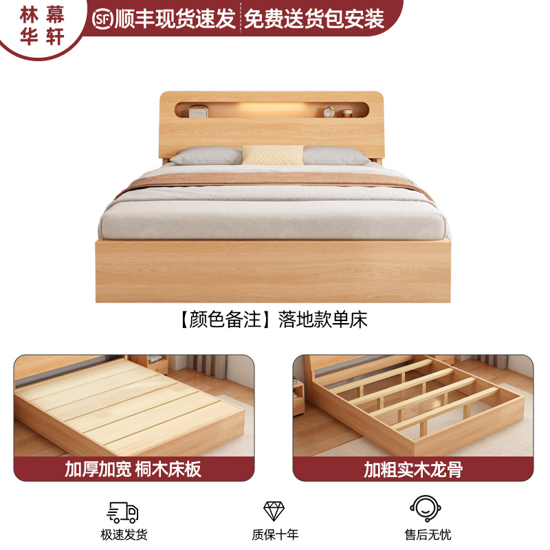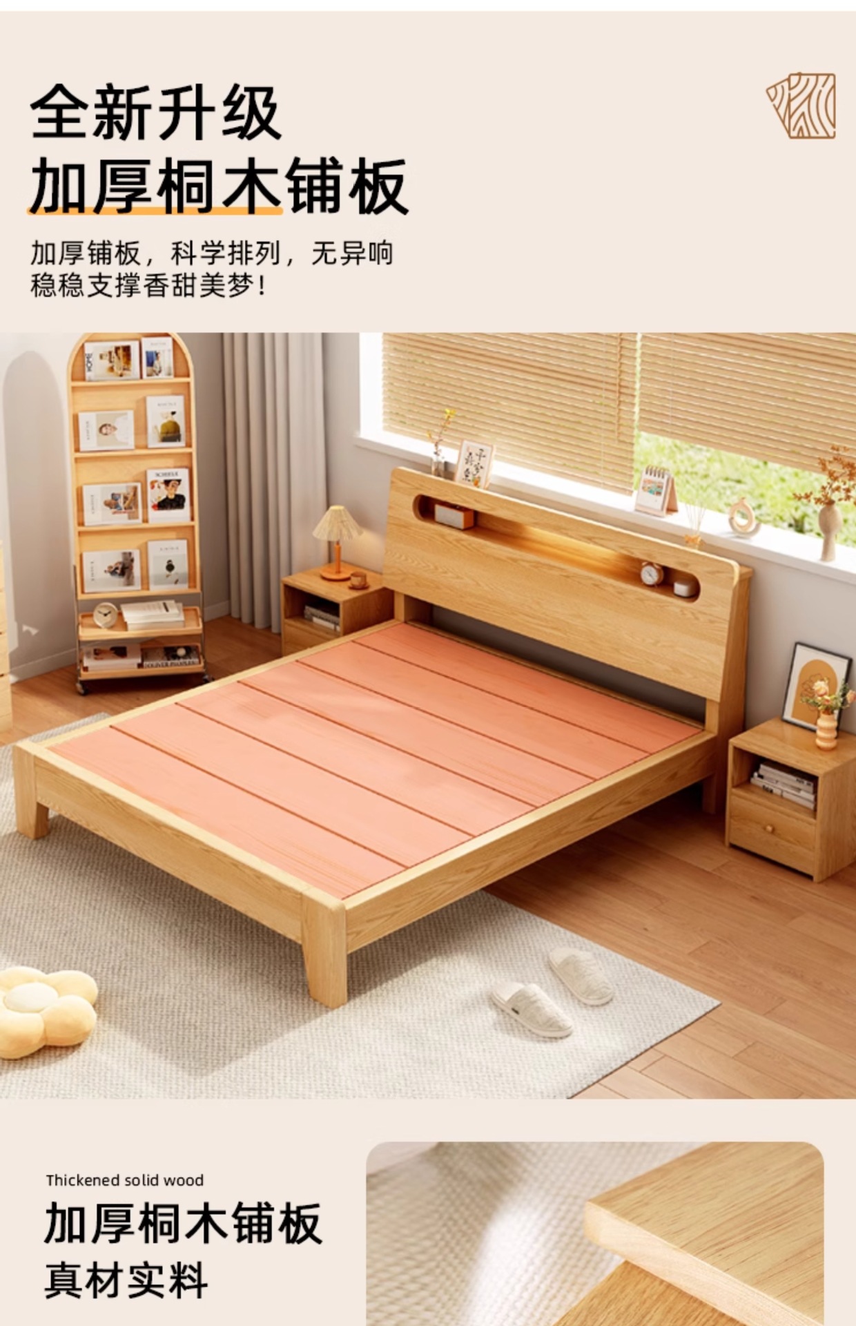 • [오동나무 판자] 플로어 스탠딩 우드 컬러 싱글 침대 + 5CM 코코넛 야자 매트리스 + 침대 옆 테이블 * 2 [집으로 배송]