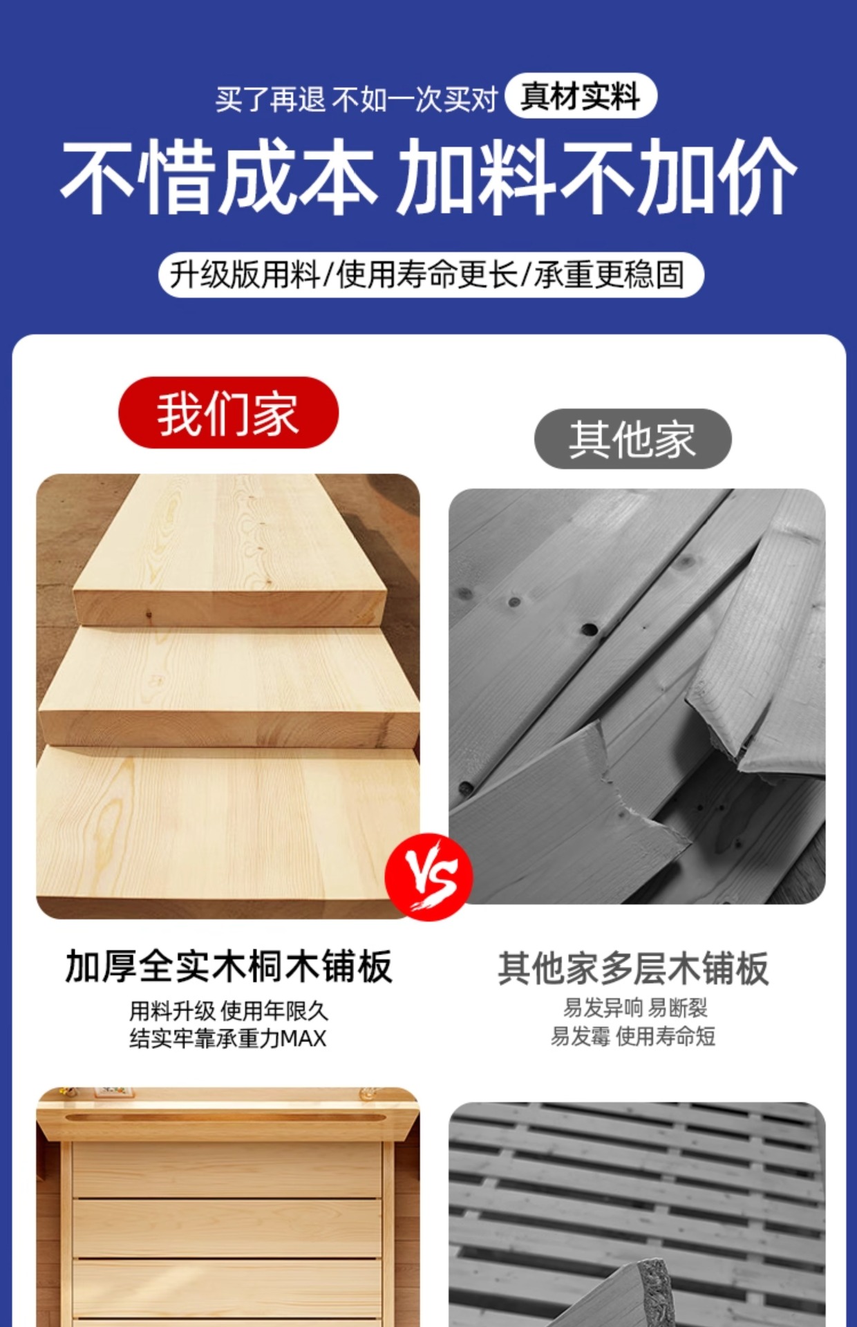 • [오동나무 판자] 바닥에서 천장까지 이어지는 원목 컬러 싱글 침대 + 10CM 코코넛 야자 매트리스 + 침대 옆 탁자*2 [집으로 배송]