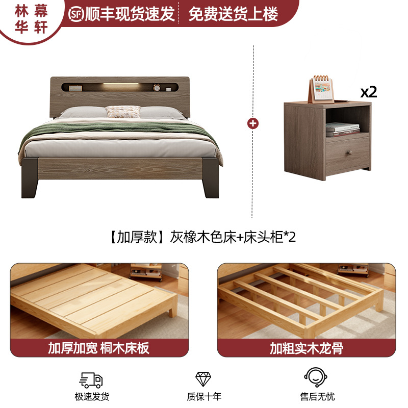 • [오동나무 판자] 플로어 스탠딩 그레이 오크 싱글 침대 + 10CM 코코넛 야자 매트리스 + 침대 옆 테이블 * 2 [집으로 배송]