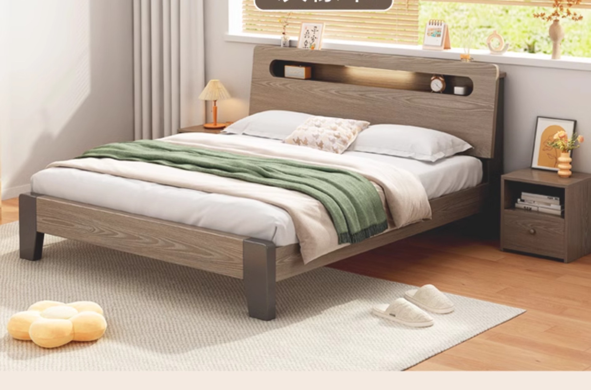 침대 원목 침대 더블 1.8m 침대 프레임 두꺼운 뼈대 침실 홈 1.5m 임대실용 싱글 침대
