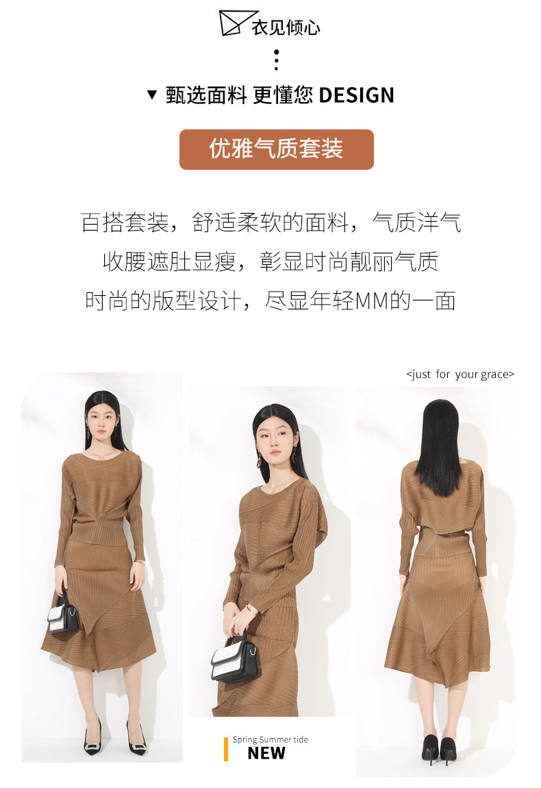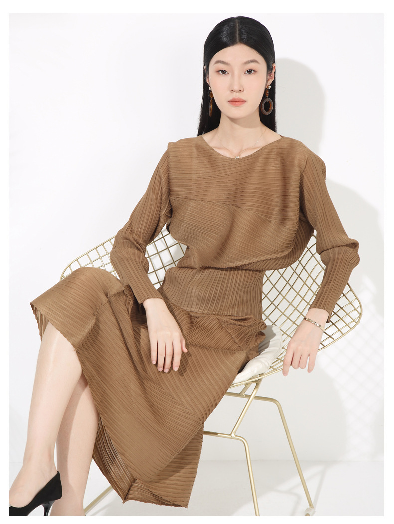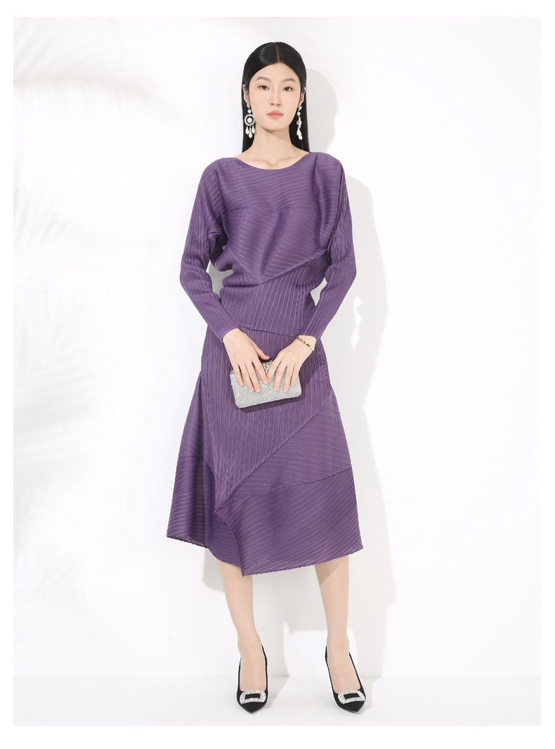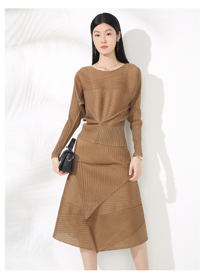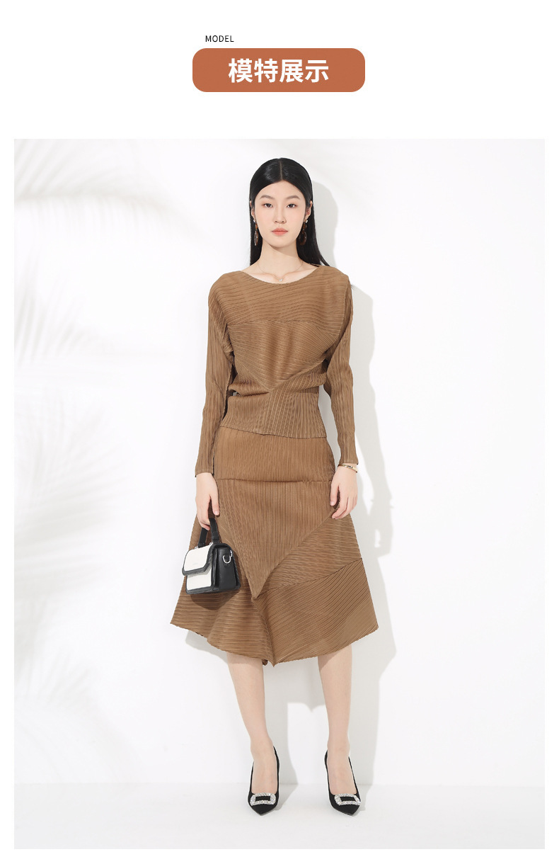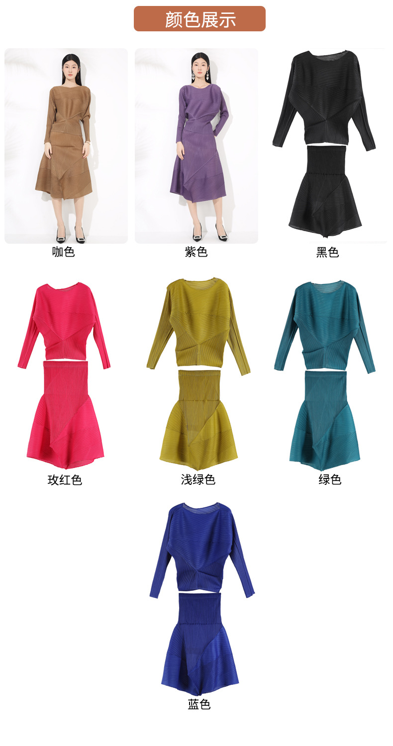 접힌 둥근 목 슬리브 톱 2025 여름 새로운 캐주얼 불규칙한 스커트 솔리드 컬러 여성용 2 피스 세트스토어 가기
