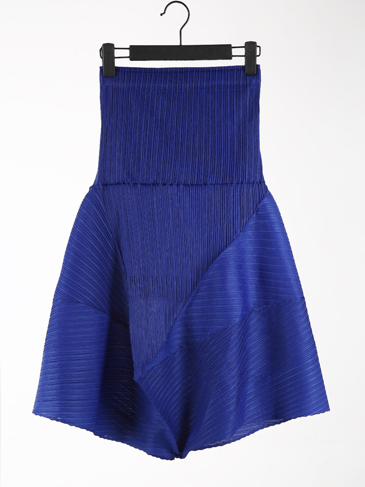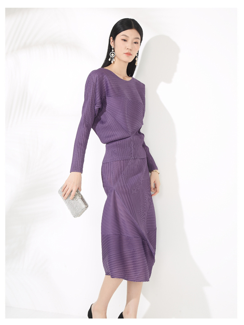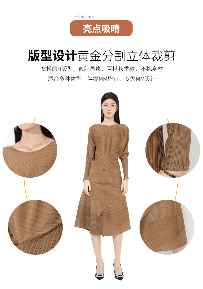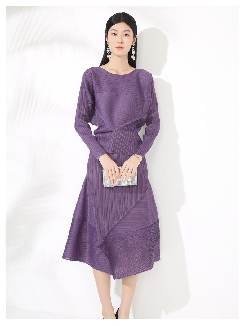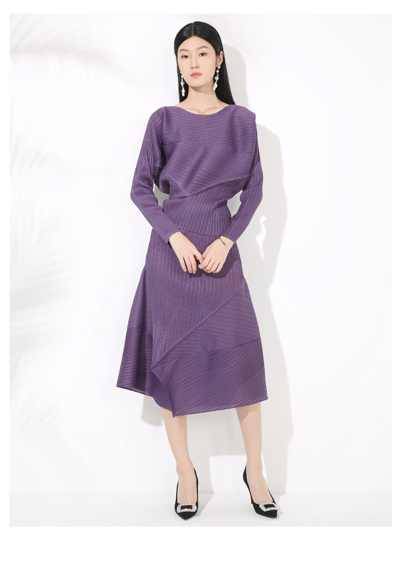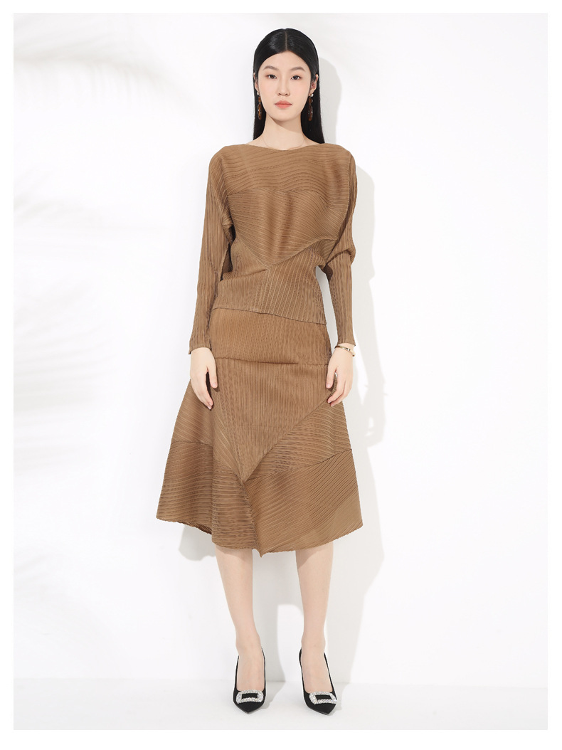 접힌 둥근 목 슬리브 톱 2025 여름 새로운 캐주얼 불규칙한 스커트 솔리드 컬러 여성용 2 피스 세트스토어 가기