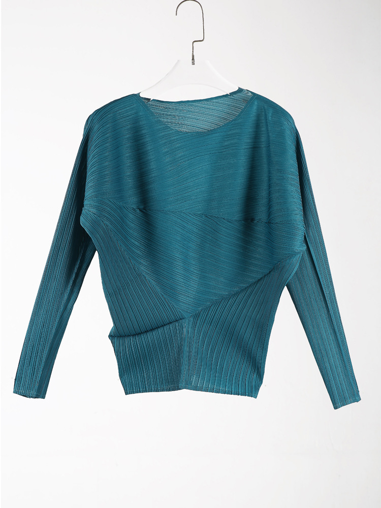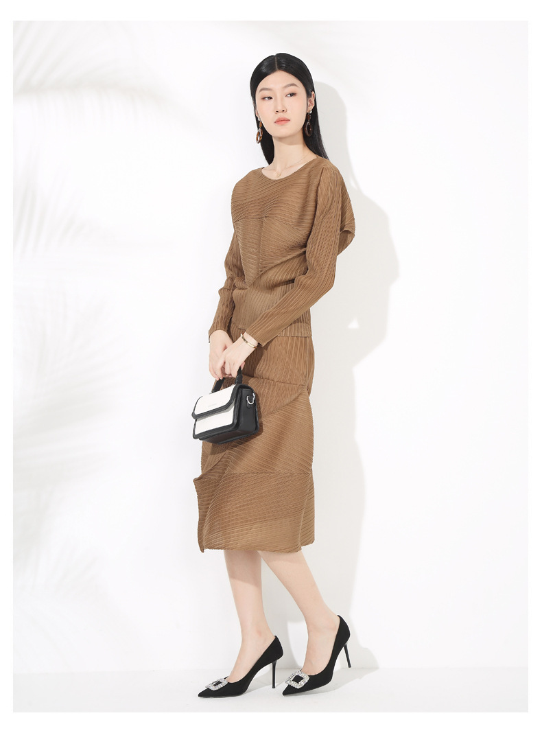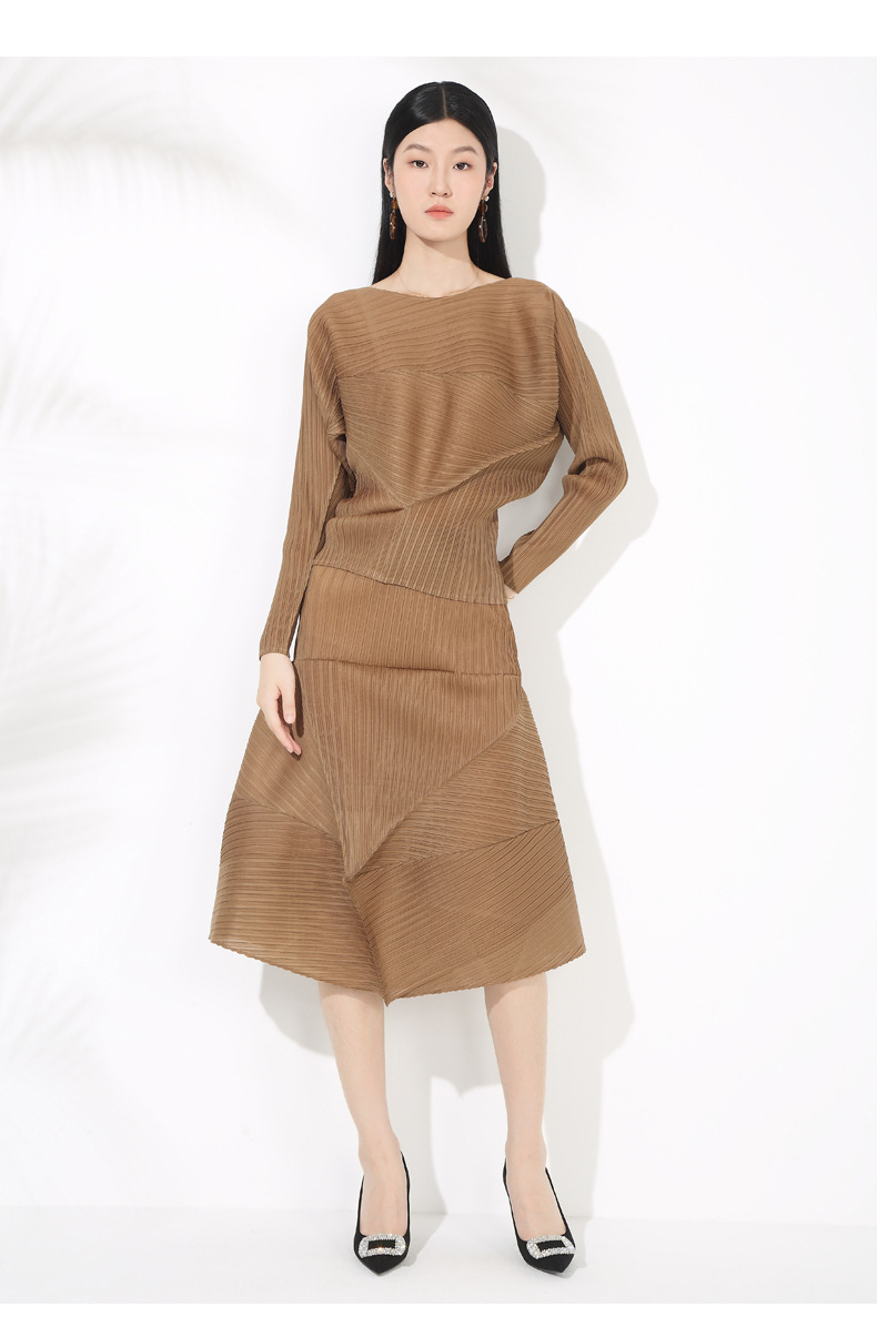 접힌 둥근 목 슬리브 톱 2025 여름 새로운 캐주얼 불규칙한 스커트 솔리드 컬러 여성용 2 피스 세트