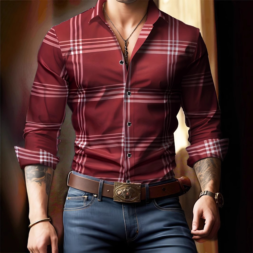국경 여름 고품질 인쇄 패션 폭스 바겐 캐주얼 모든 경기 격자 무늬 남성 긴팔 셔츠 얇은 섹션