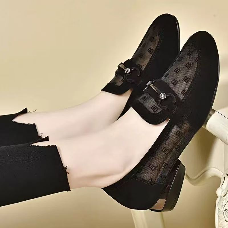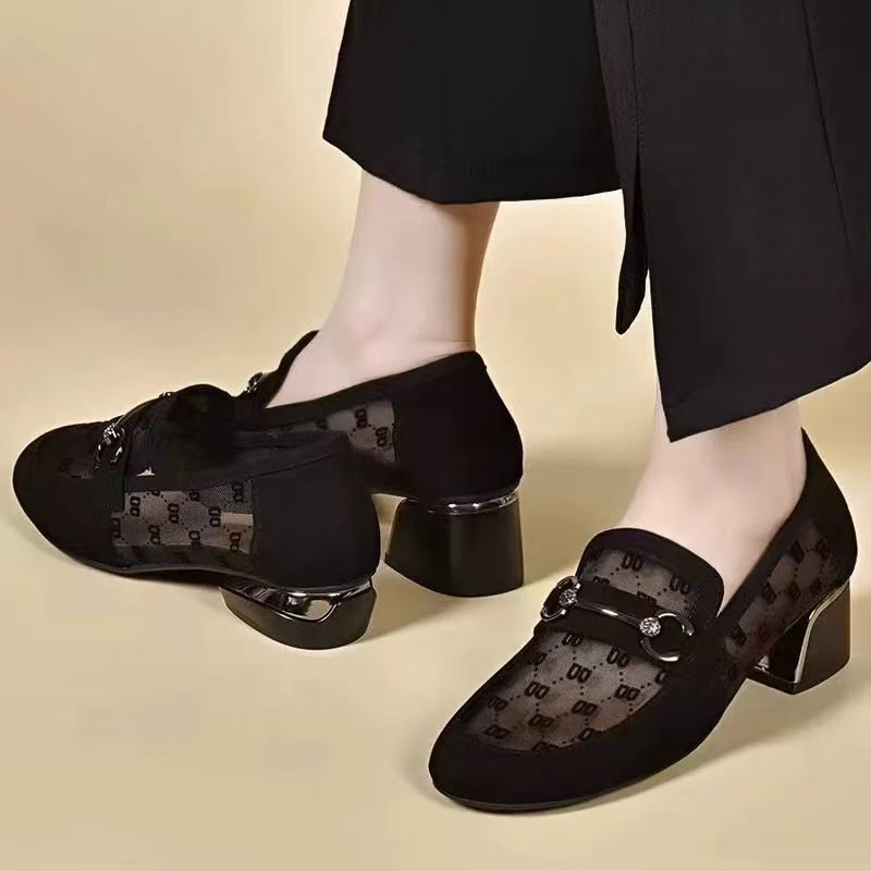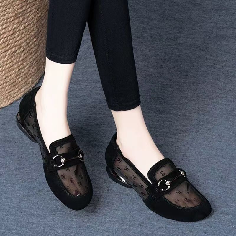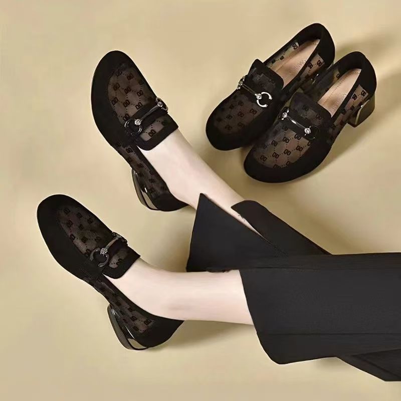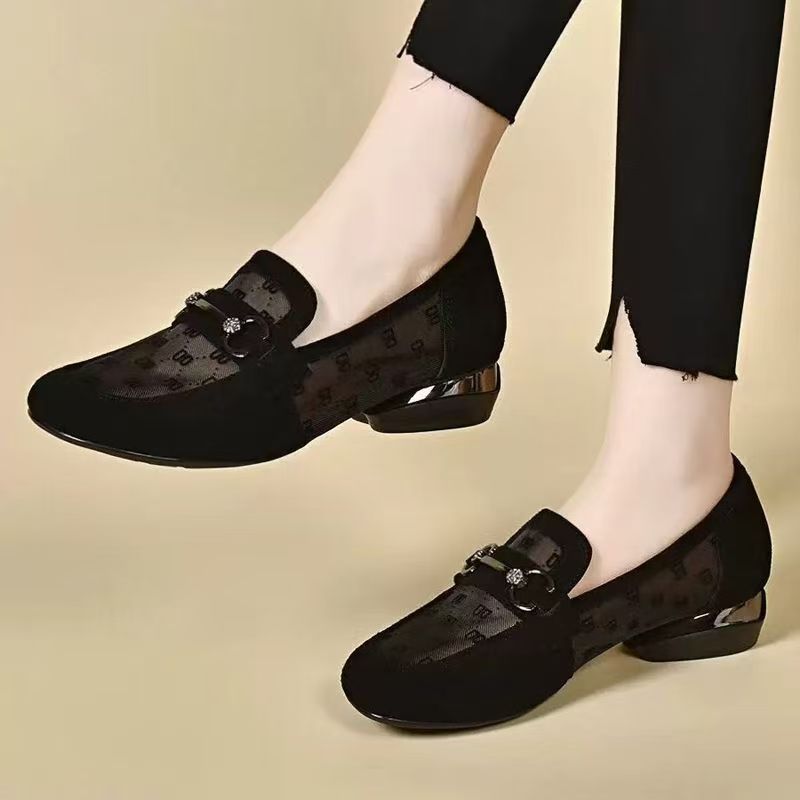 여성을위한 메쉬 로퍼 여름 2025 새로운 누벅 가죽 두꺼운 굽 싱글 신발 봄과 가을 부드러운 밑창 대형 여성 신발스토어 가기