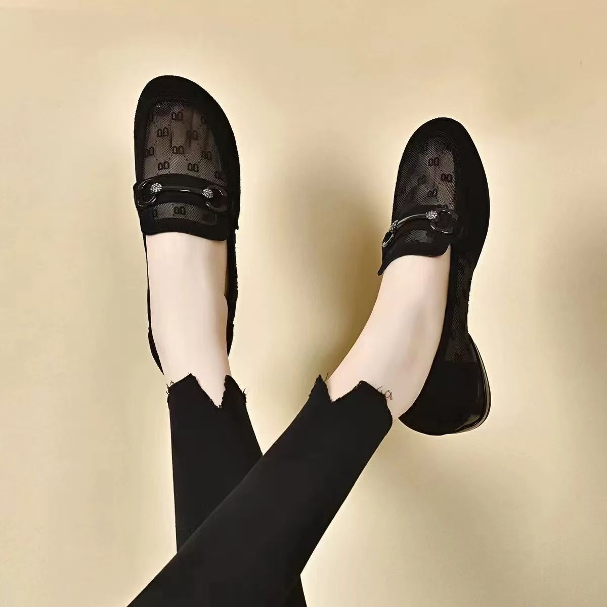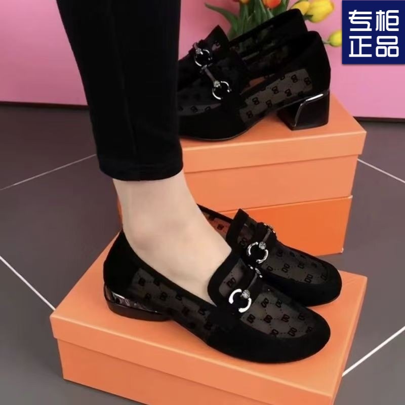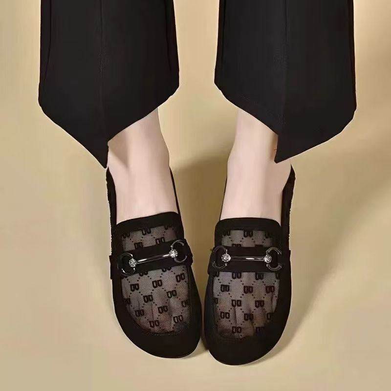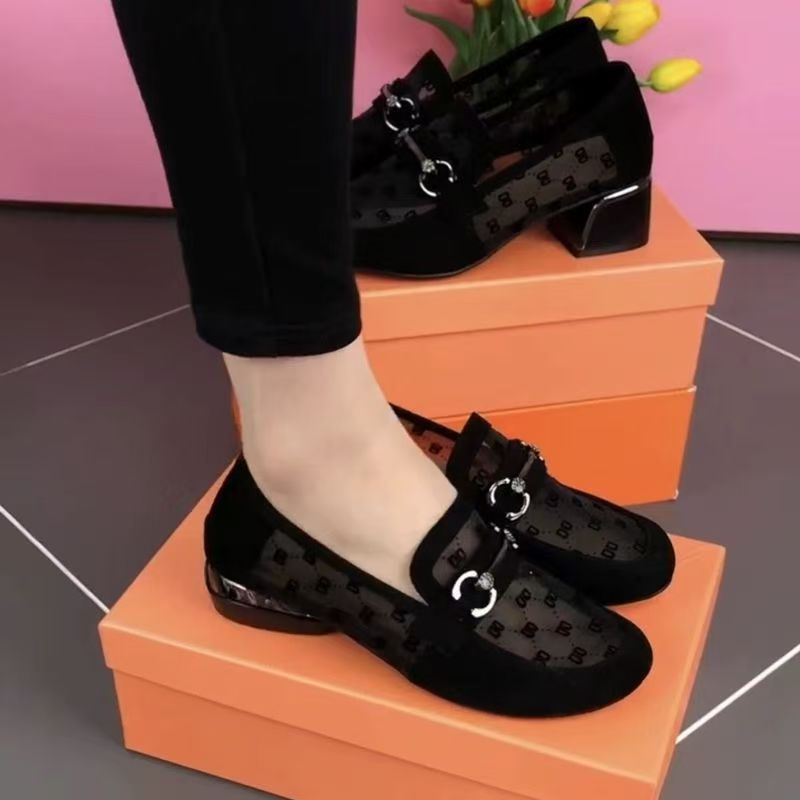 여성을위한 메쉬 로퍼 여름 2025 새로운 누벅 가죽 두꺼운 굽 싱글 신발 봄과 가을 부드러운 밑창 대형 여성 신발스토어 가기