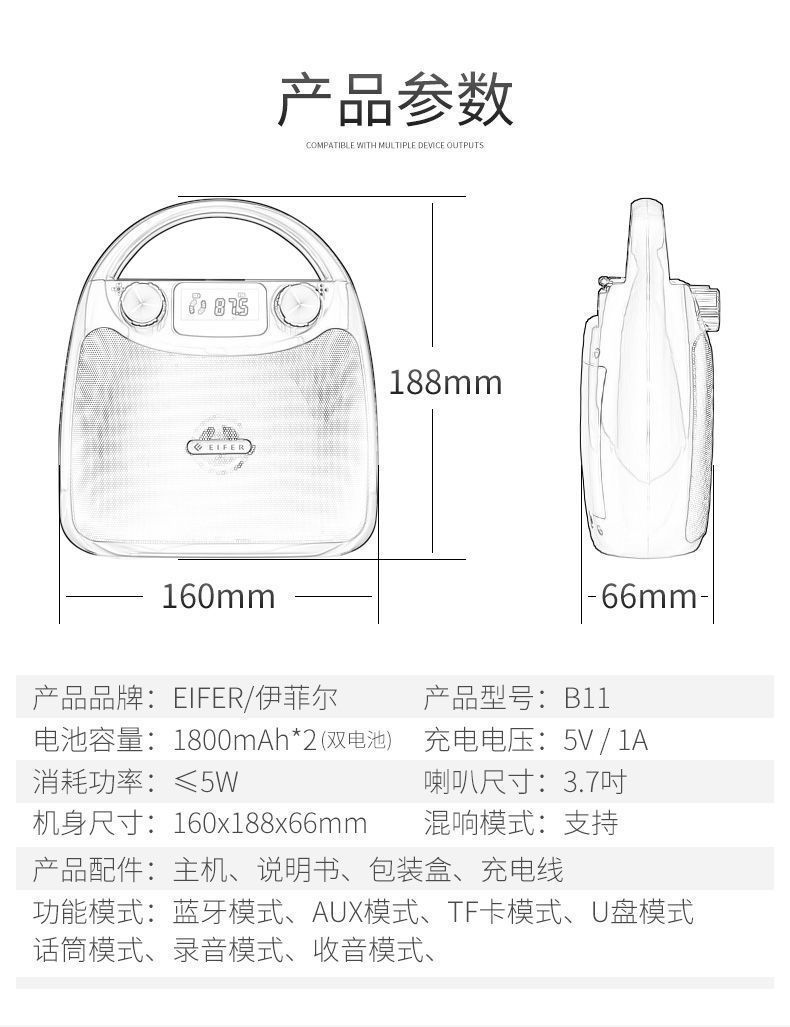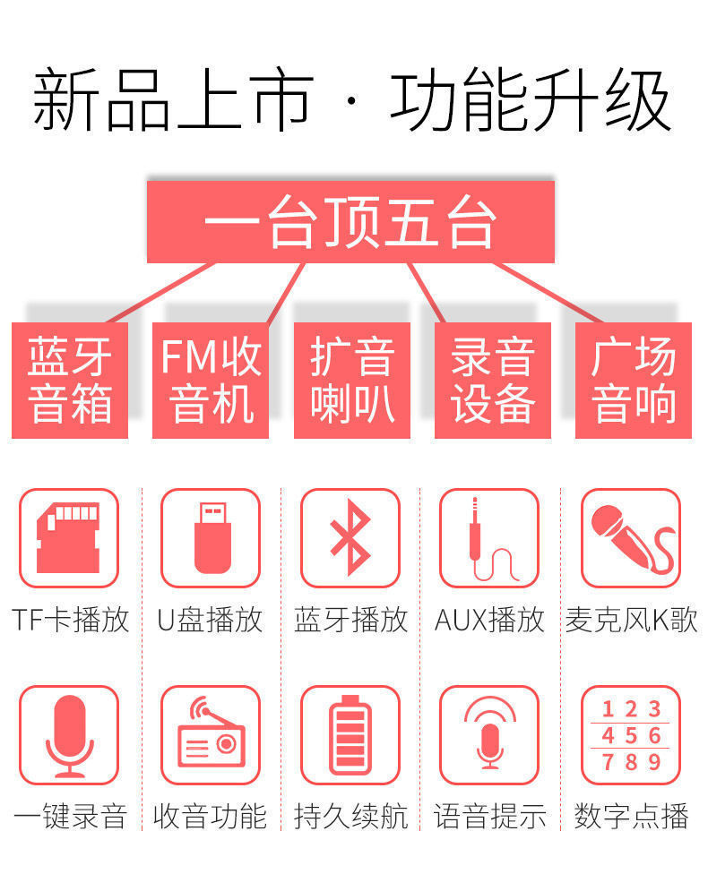 무선 마이크가있는 광장 댄스 오디오 야외 무선 블루투스 스피커 휴대용 소형 플레이어 대외 무역 공장 도매스토어 가기