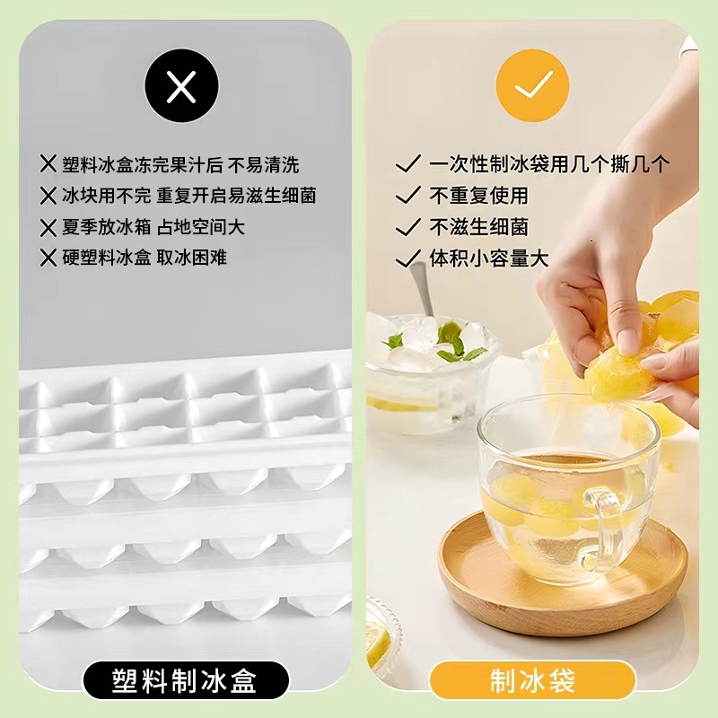 식품 등급 얼음 트레이 가방 가정용 자체 밀봉 식용 금형 얼음 가방 물이 채워진 아이스 큐브 주스 일회용 얼음 가방