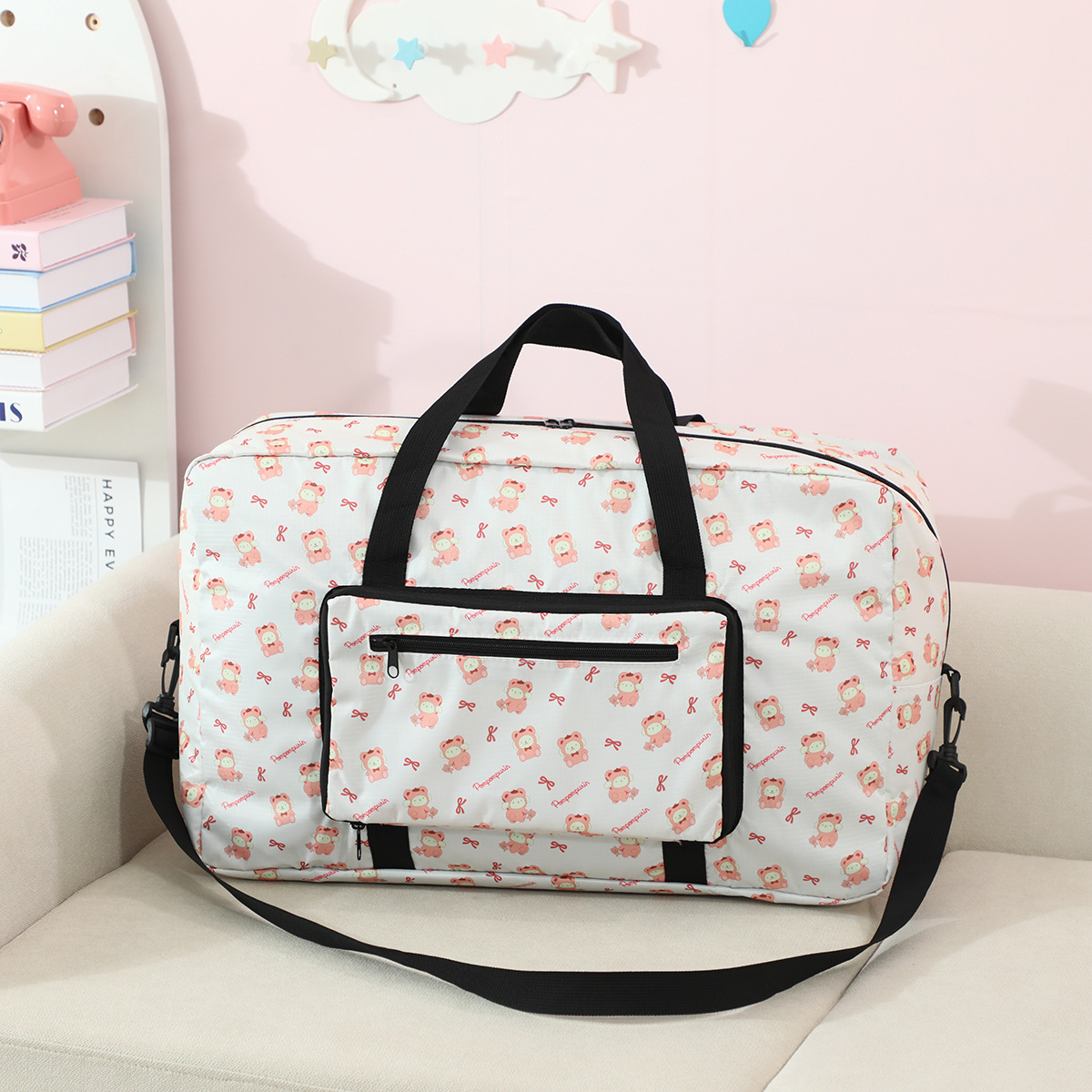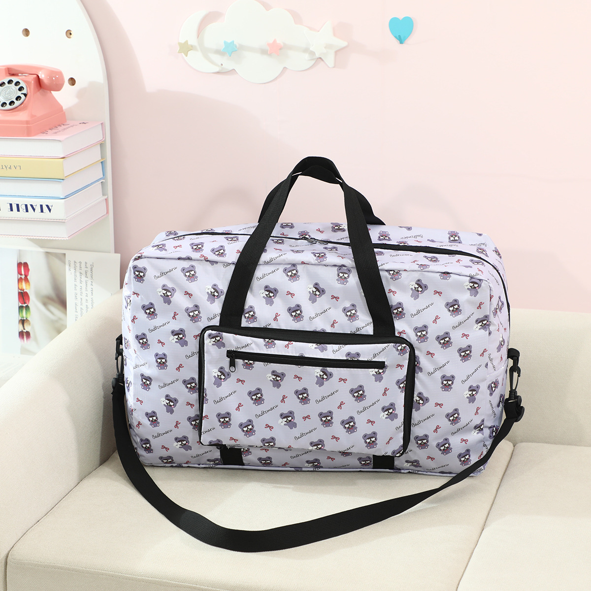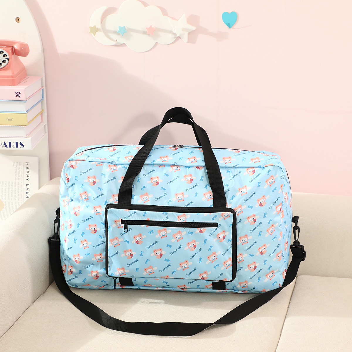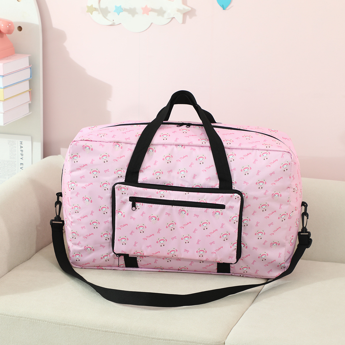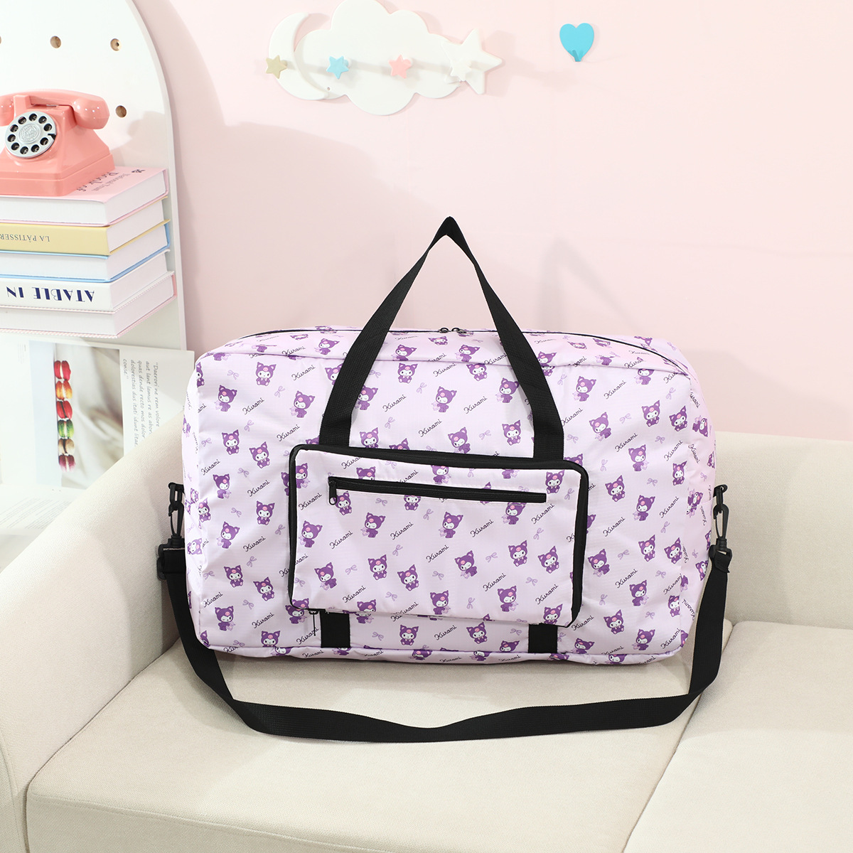귀여운 만화 수하물 가방 대용량 수하물 보관 가방 여행 가방 쿠로미에 걸 수 있는 휴대용 수하물 가방스토어 가기