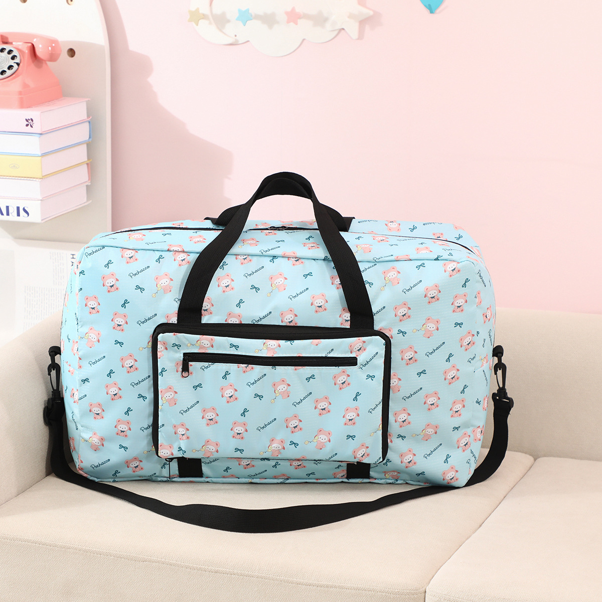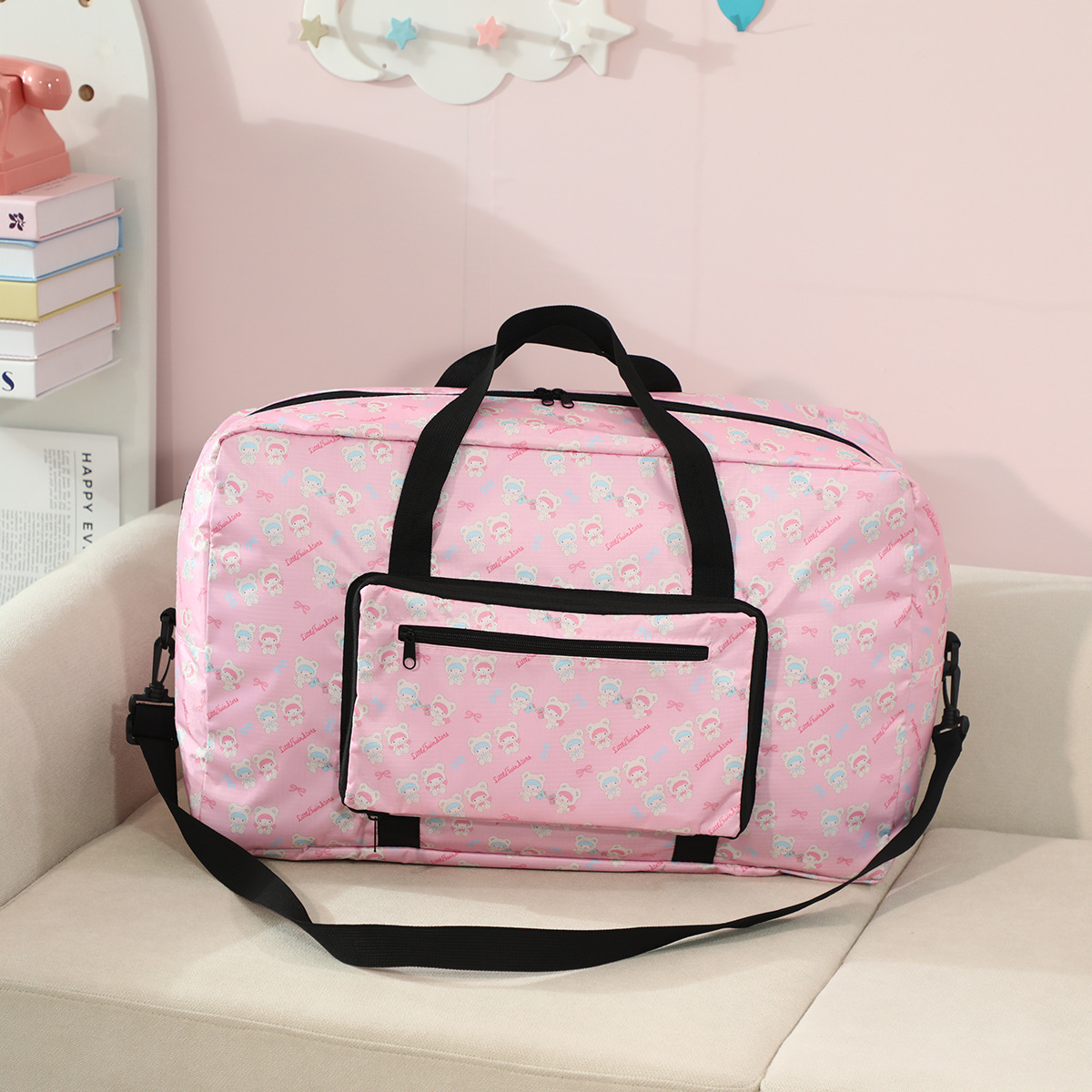 귀여운 만화 수하물 가방 대용량 수하물 보관 가방 여행 가방 쿠로미에 걸 수 있는 휴대용 수하물 가방
