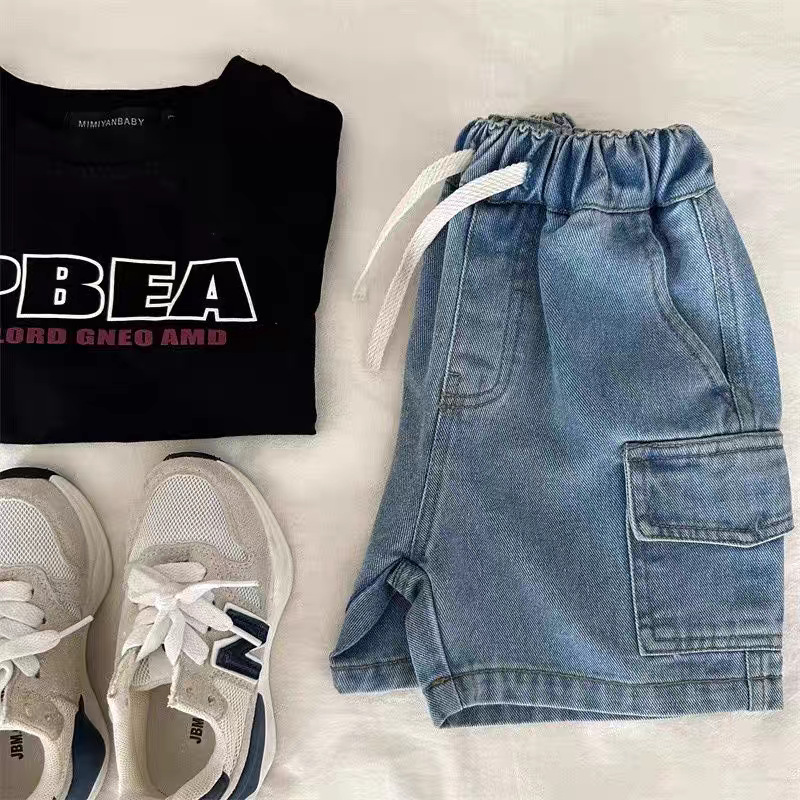 어린이 반바지 여름 얇은 어린 소녀 핫팬츠 큰 소년 반바지 제조 업체 도매 겉옷 어린이 청바지스토어 가기