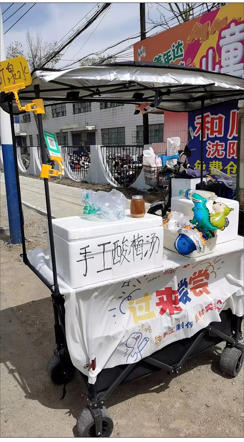 캠핑카용 대형 테이블판, 야외 매점용 특수 차양막, 대용량 트롤리, 접이식 휴대용 트롤리스토어 가기