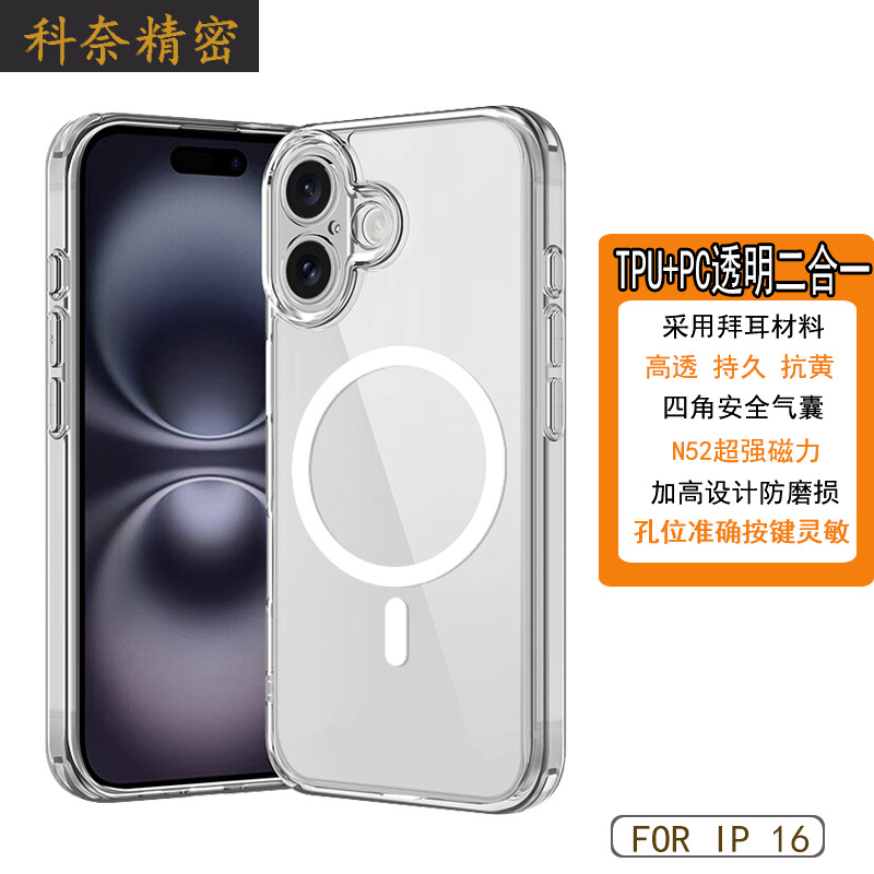 맞춤형 새로운 Apple 17 자기 보호 커버 IPONE16E 고급 에어백 낙하 방지 투명 2-in-1 휴대폰 케이스