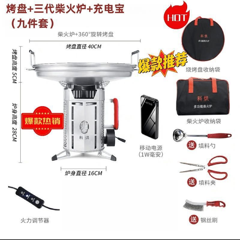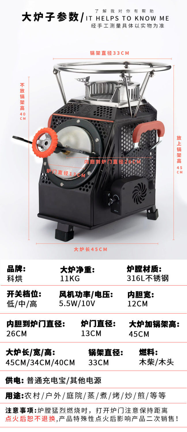 • 케홍의 새로운 대형 장작 난로 + 회전 베이킹 팬 + 액세서리