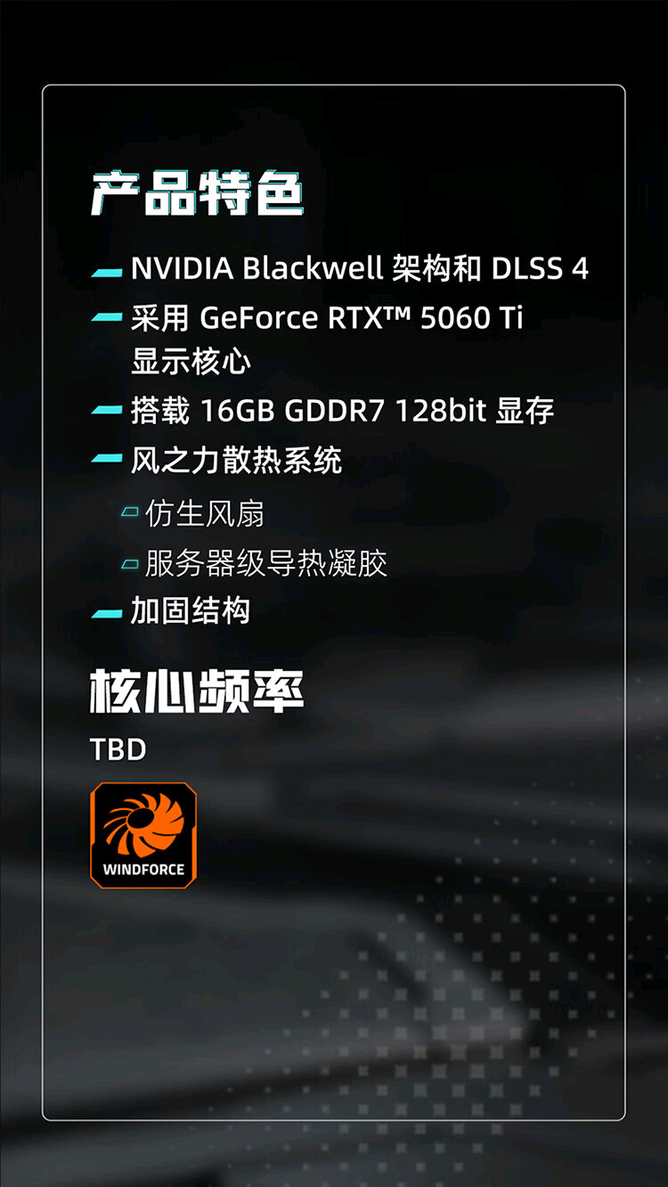 기가바이트 RTX5060Ti WINDFORCE 16G 윈드모 게이밍 e스포츠 디자인 AI 독립 그래픽 카드에 적합
