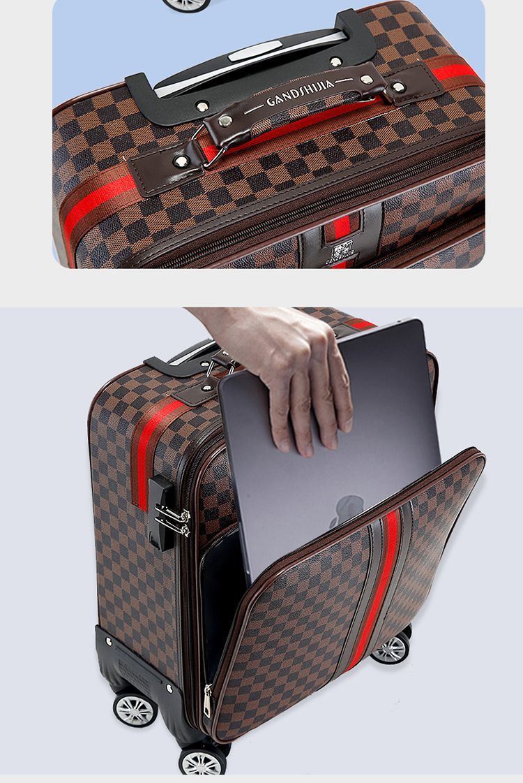 • 베이지 체크 무늬 PU 소재 회전 휠