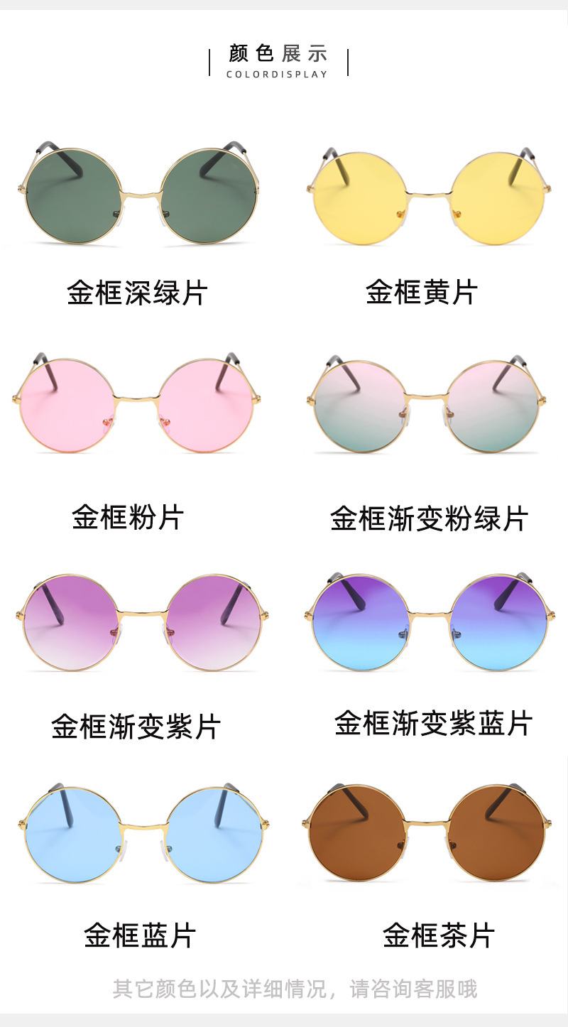 공장 도매 복고풍 라운드 선글라스 다채로운 트렌디 라운드 프레임 안경 컬러 렌즈 프린스의 안경 최고의 남자 선글라스
