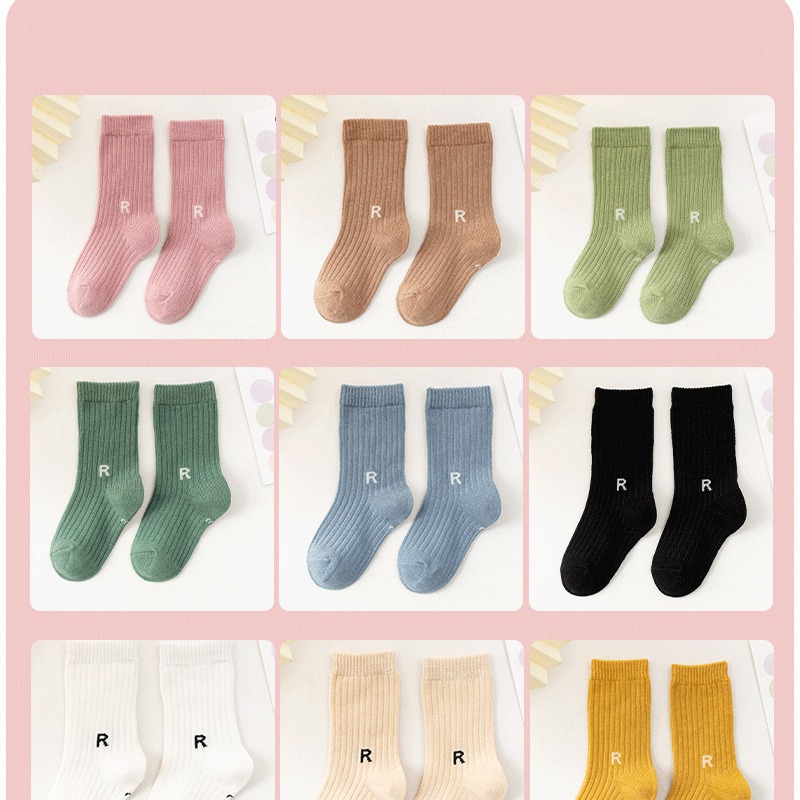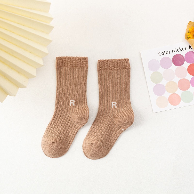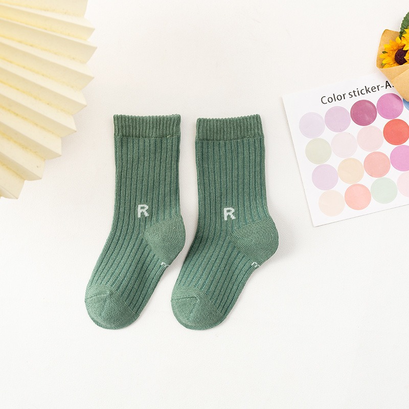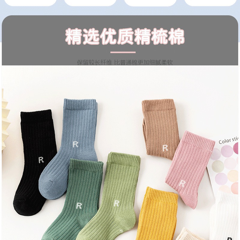 가을과 겨울 새로운 유행 양말 R-표준 중간 튜브 양말 어린이 면 양말 스포츠 스타일 수직 스트립 중간 튜브 양말 캐주얼 학생 양말스토어 가기