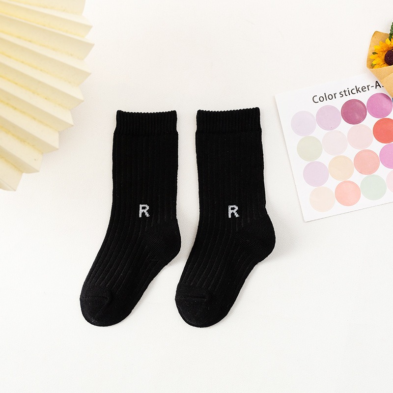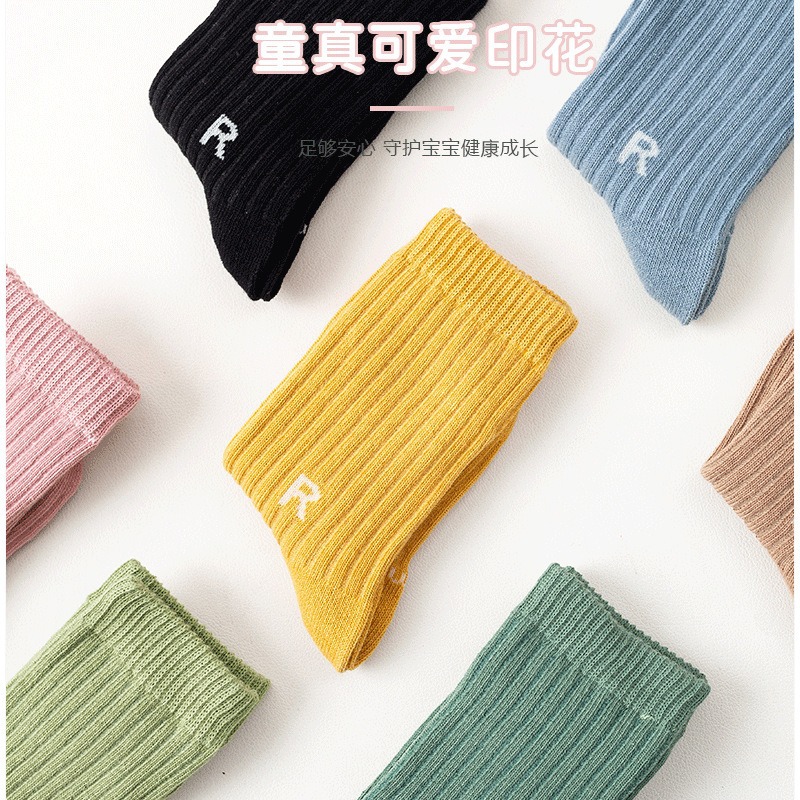 가을과 겨울 새로운 유행 양말 R-표준 중간 튜브 양말 어린이 면 양말 스포츠 스타일 수직 스트립 중간 튜브 양말 캐주얼 학생 양말
