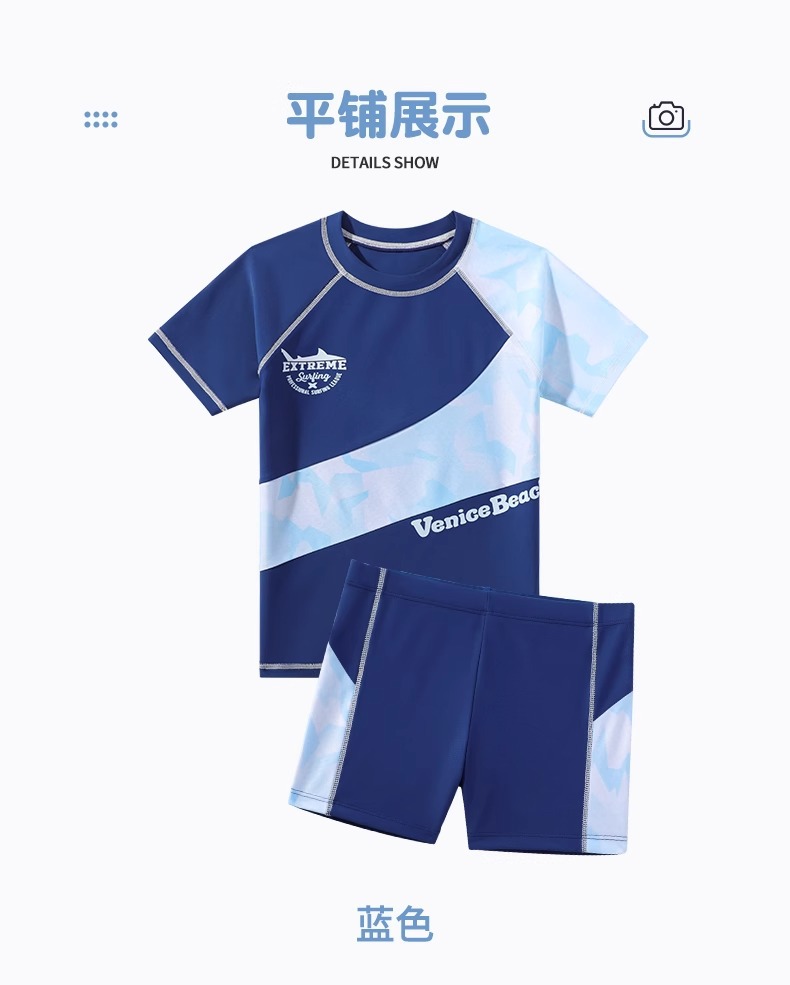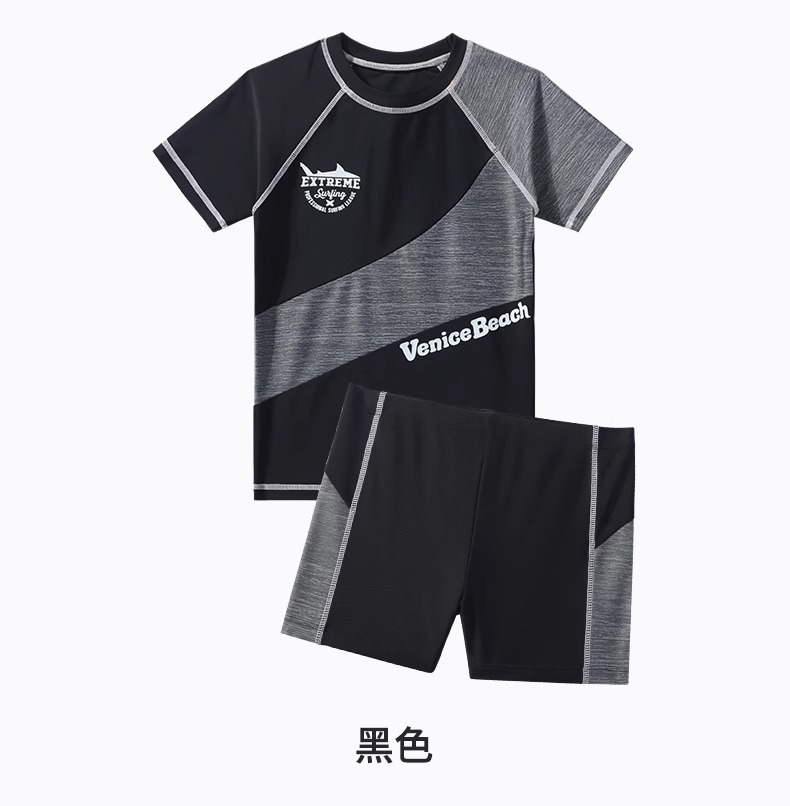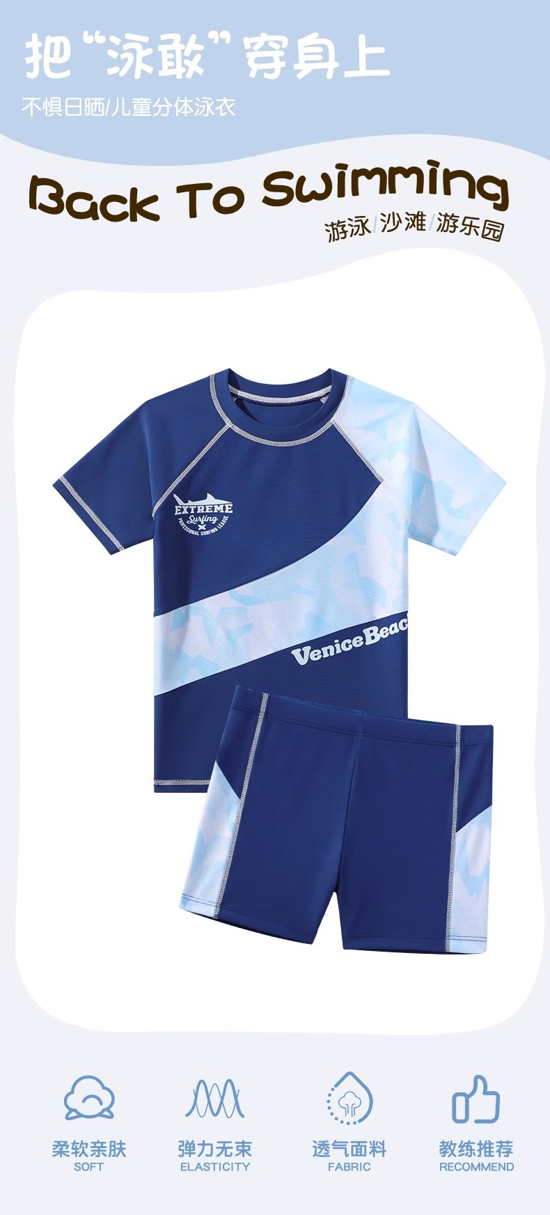 남아용 스플릿 투피스 반팔 반바지 컬러 블록 보수적 속건성 중대형 아동용 2025 신상 여름 온천 수영복스토어 가기