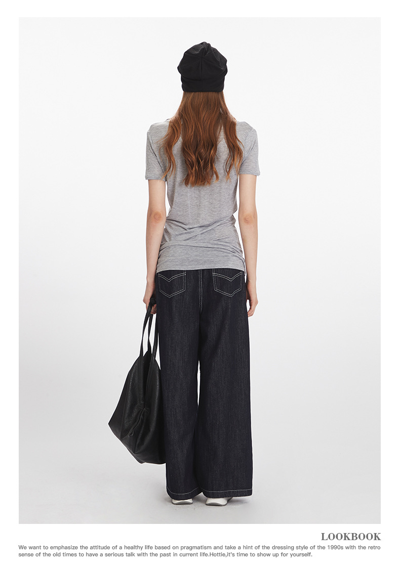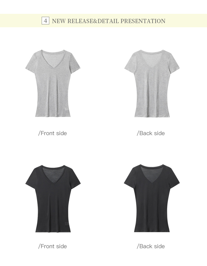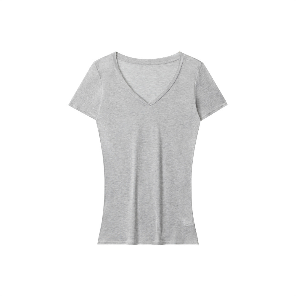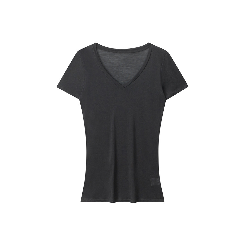 HeyHenry Lyocell 얇은 통기성 V 넥 슬림 반팔 티셔츠 여성 2025 여름 오른쪽 어깨 슬리밍 탑스토어 가기