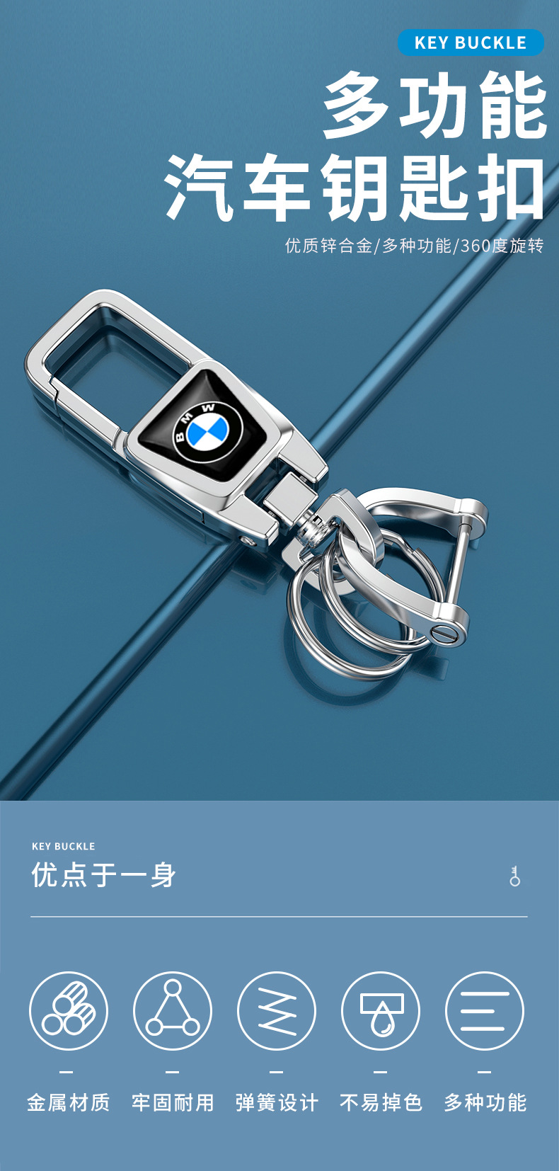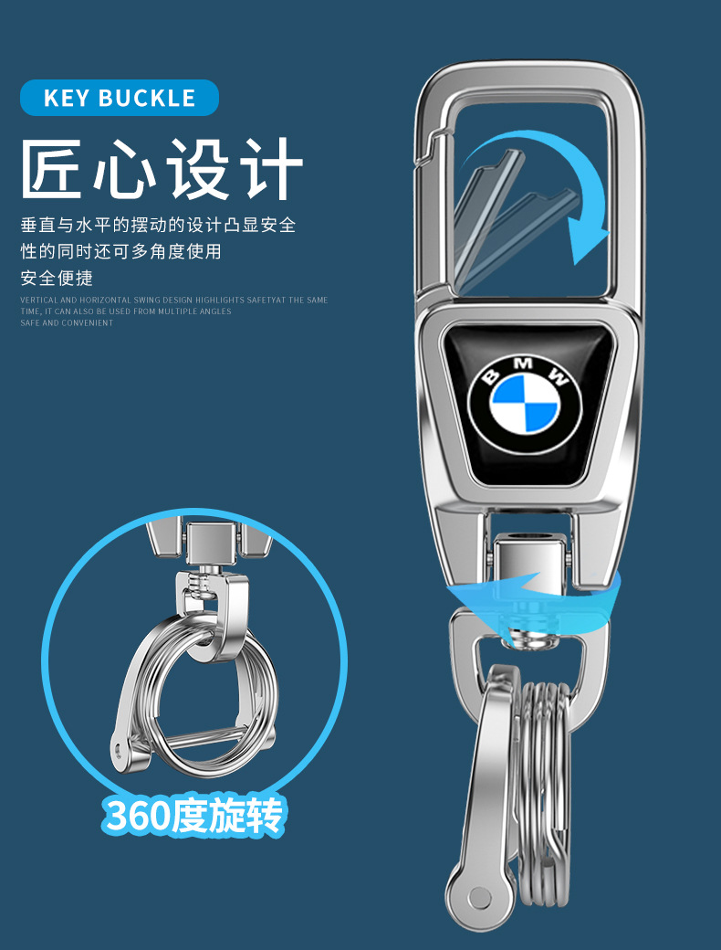 • BMW【다기능 키체인 360 ° 회전】밝은 은색