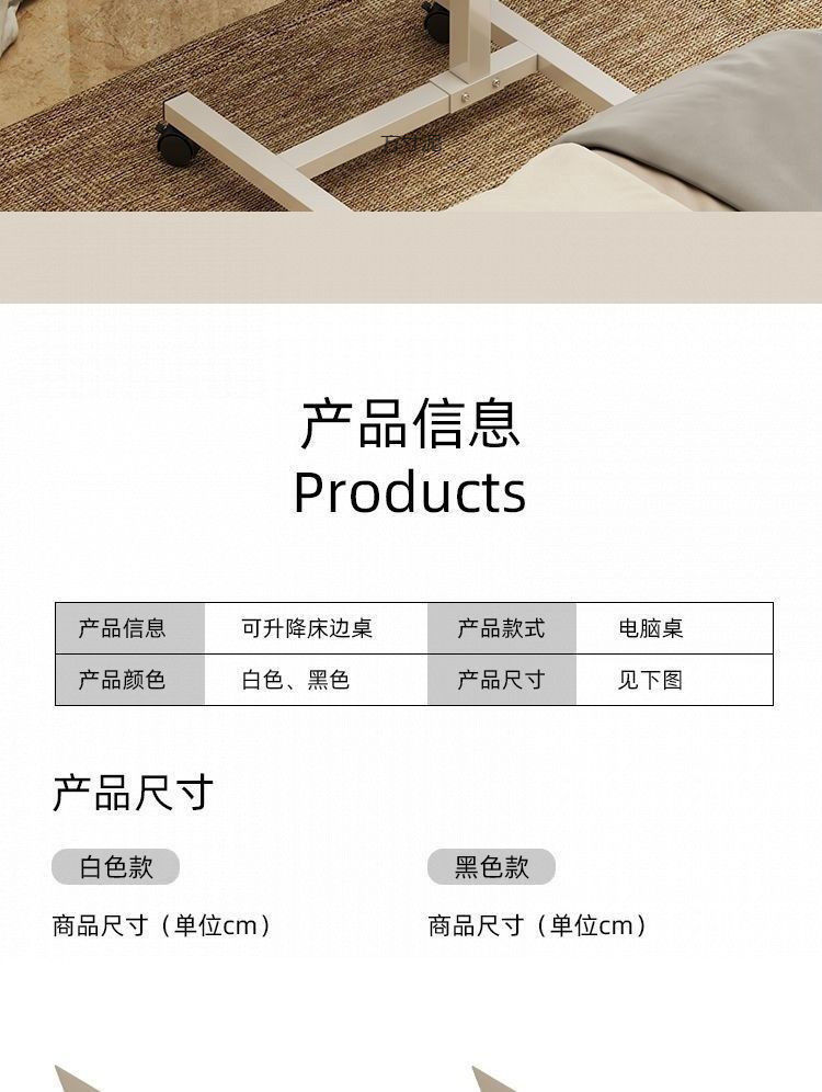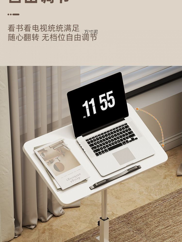 침실 침실 바닥 랙 움직일 수있는 침대 컴퓨터 책상 학생 학습 리프팅 테이블 회전 가능한 접이식 테이블