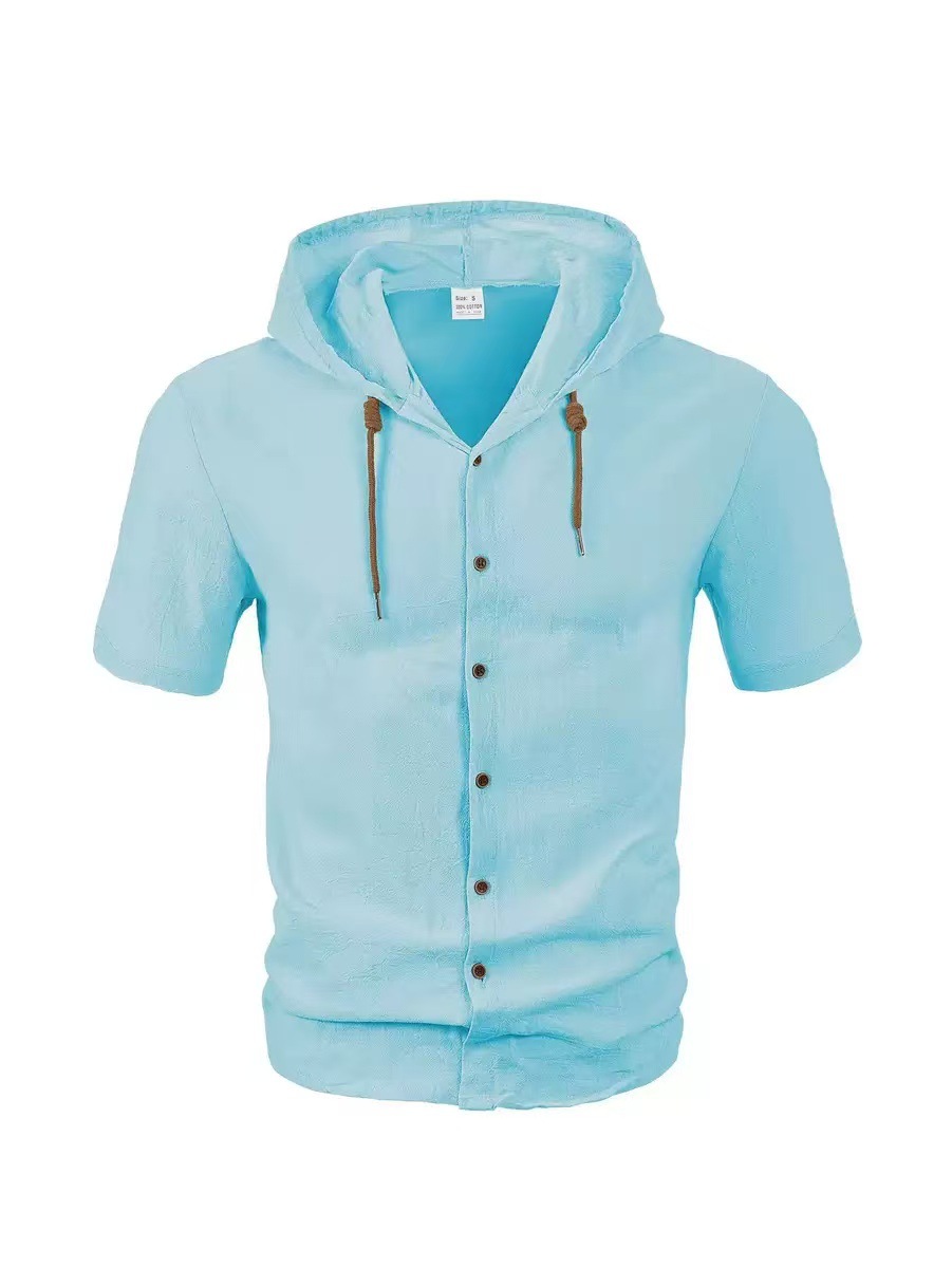 국경 간 Amazon American 여름 남성용 얇은 통기성 린넨 Ami 카키색 남성용 루즈 후드 반소매 셔츠