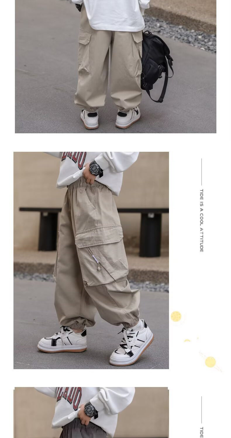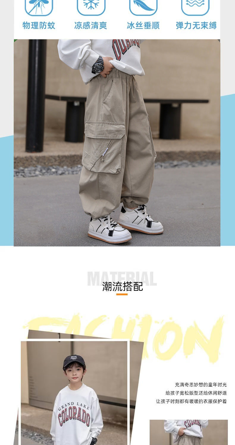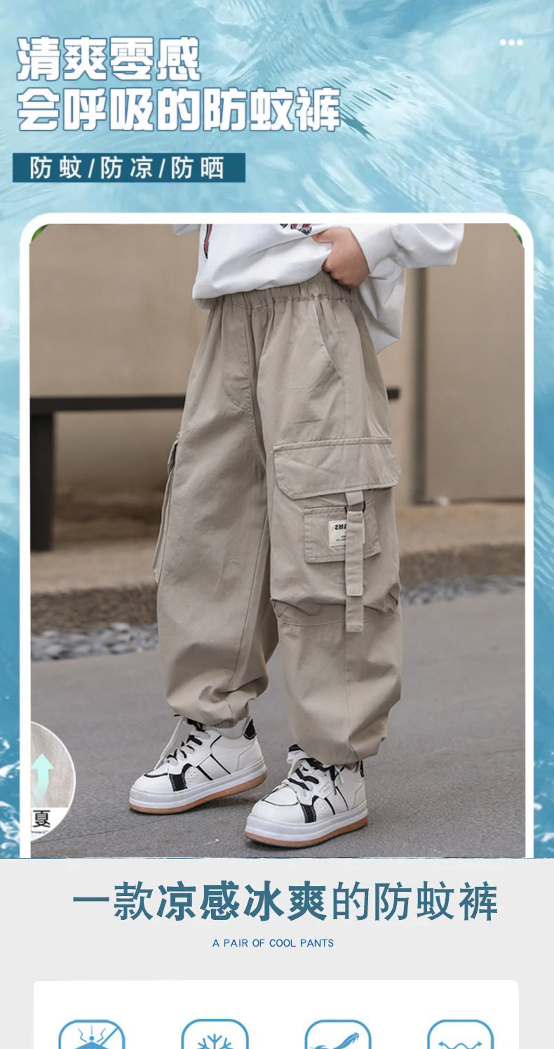 여름 소년 바지 작업복 어린이 모기 방지 바지 2025 새로운 여름 얇은 중대형 어린이 캐주얼 바지 소년스토어 가기
