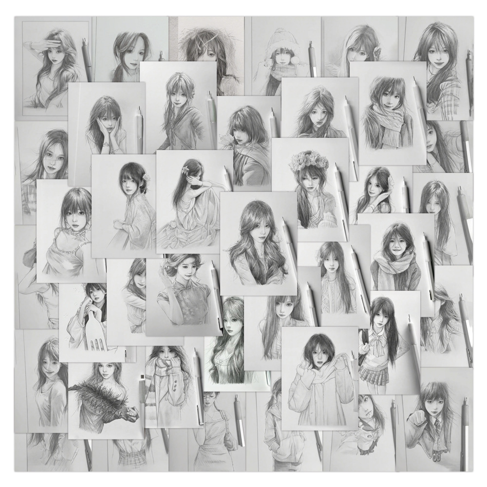 아트 페인팅, 미녀 연필 그림 스티커, 인기 있는 컷팅 없는 스케치 복사, 휴대폰 계정 스티커, 방수 60개스토어 가기