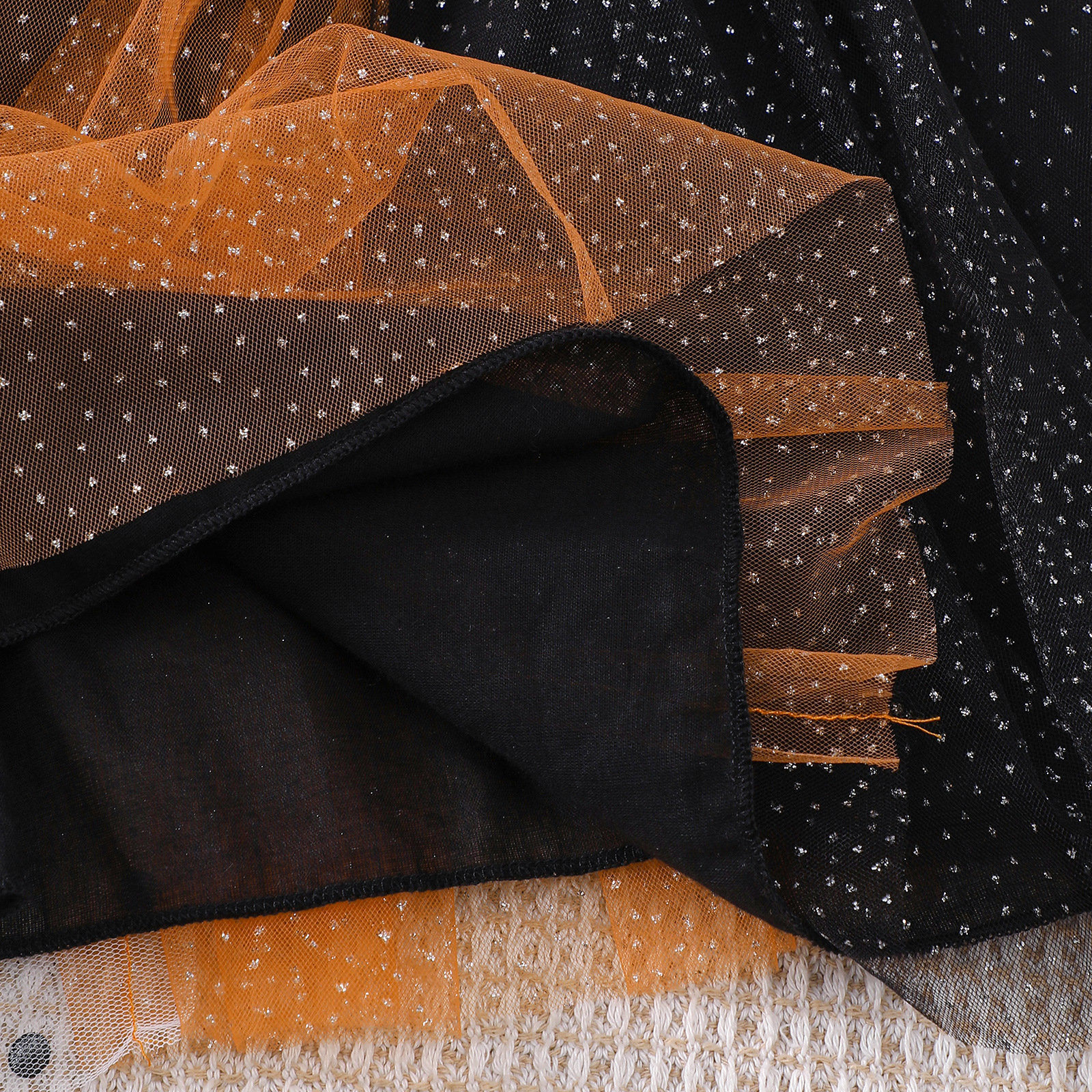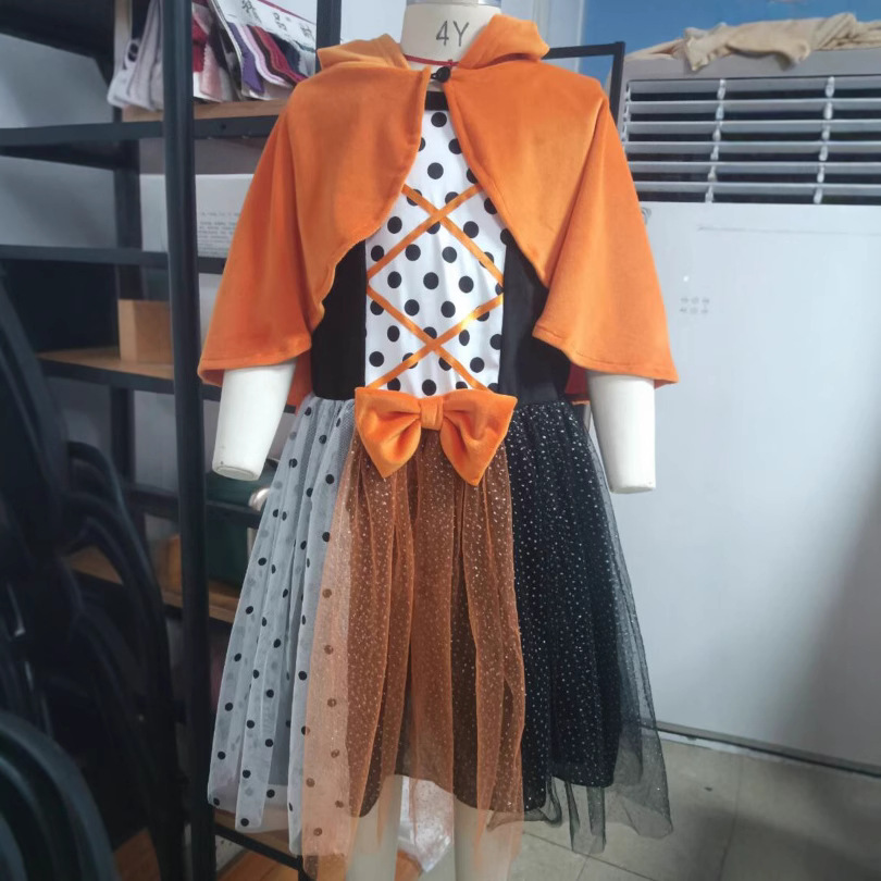 할로윈 아동복 2025 새로운 스타일 중소형 소녀 휴일 드레스 세트 폴카 도트 메쉬 스커트와 망토 투피스 세트