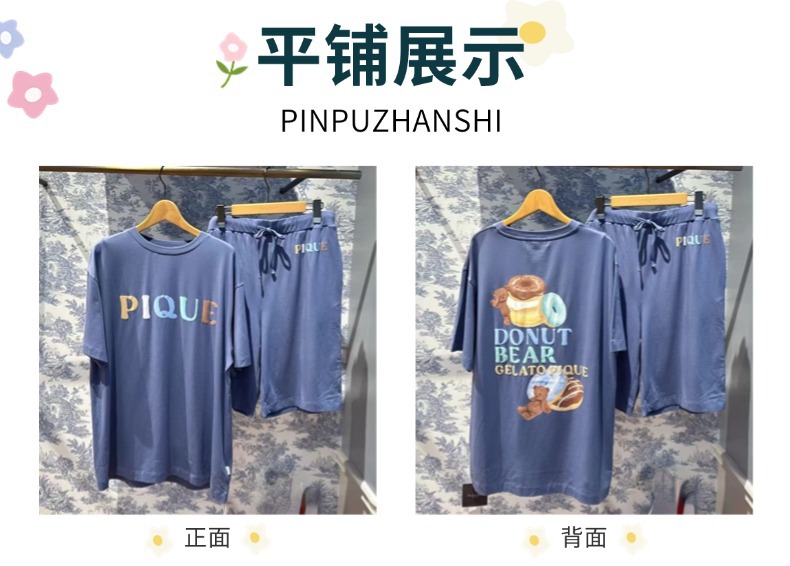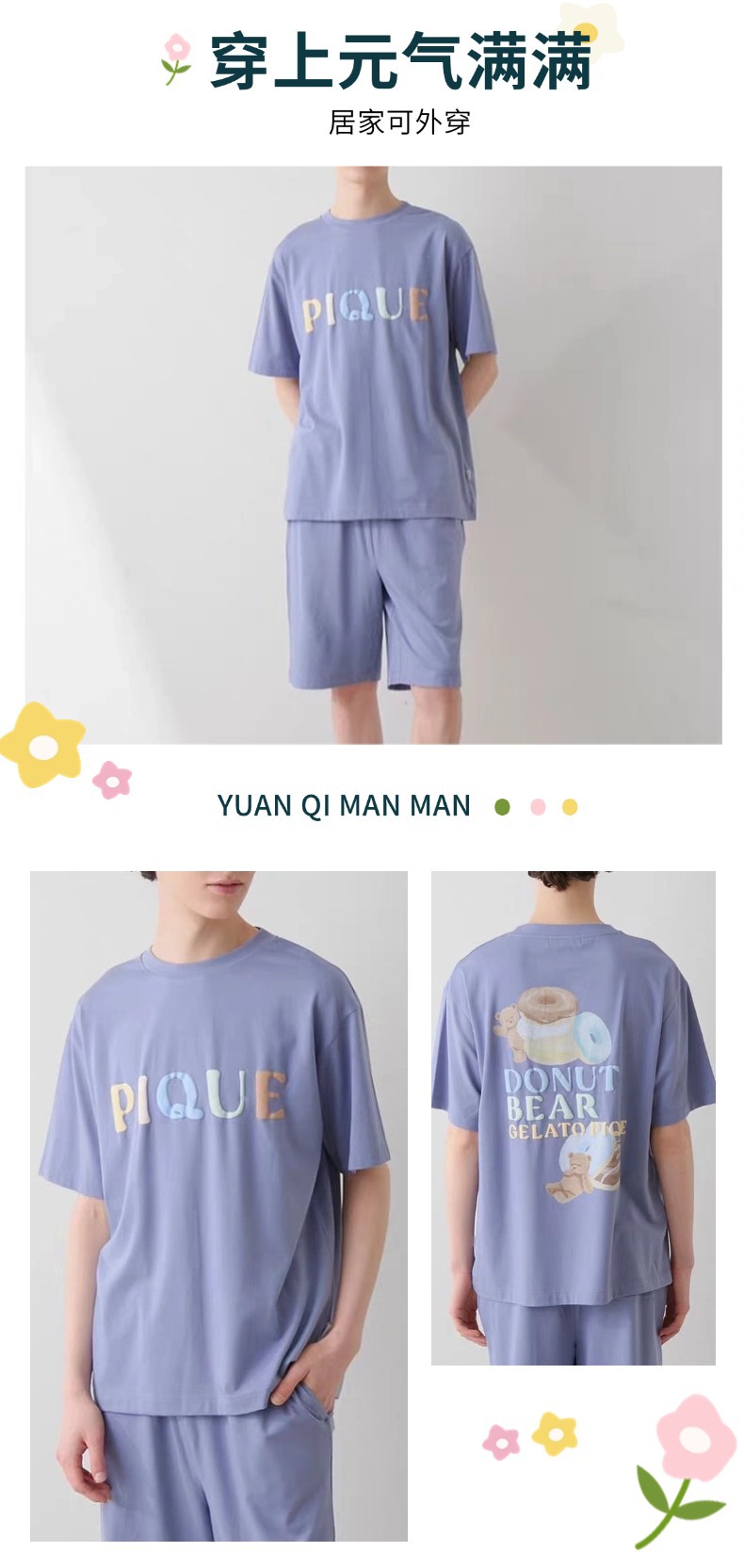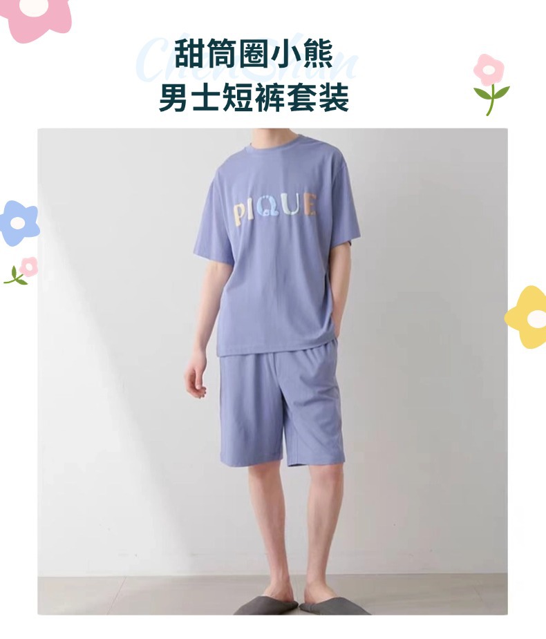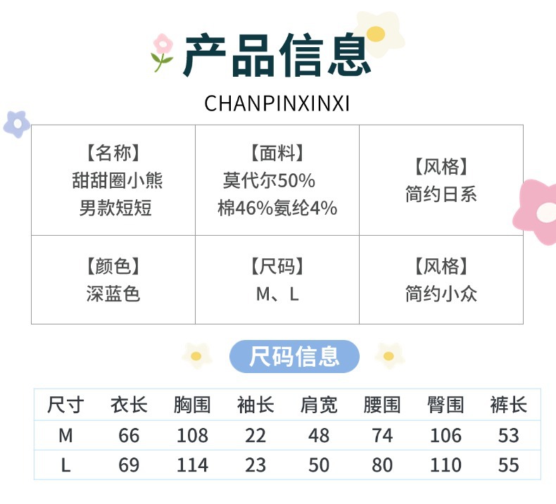 여름 느슨한 반팔 홈 의류 남성용 도넛 베어 모달 프린트 티셔츠 반바지 외부 착용스토어 가기