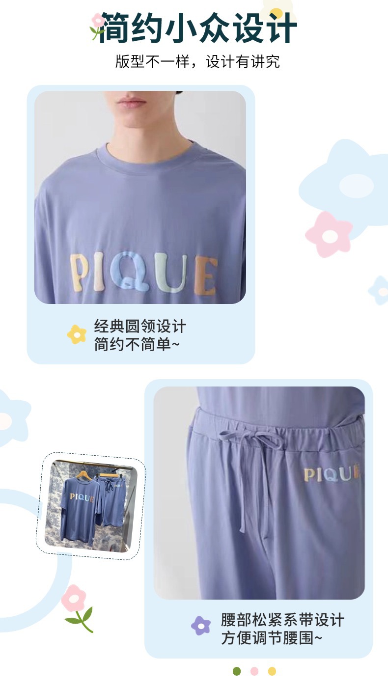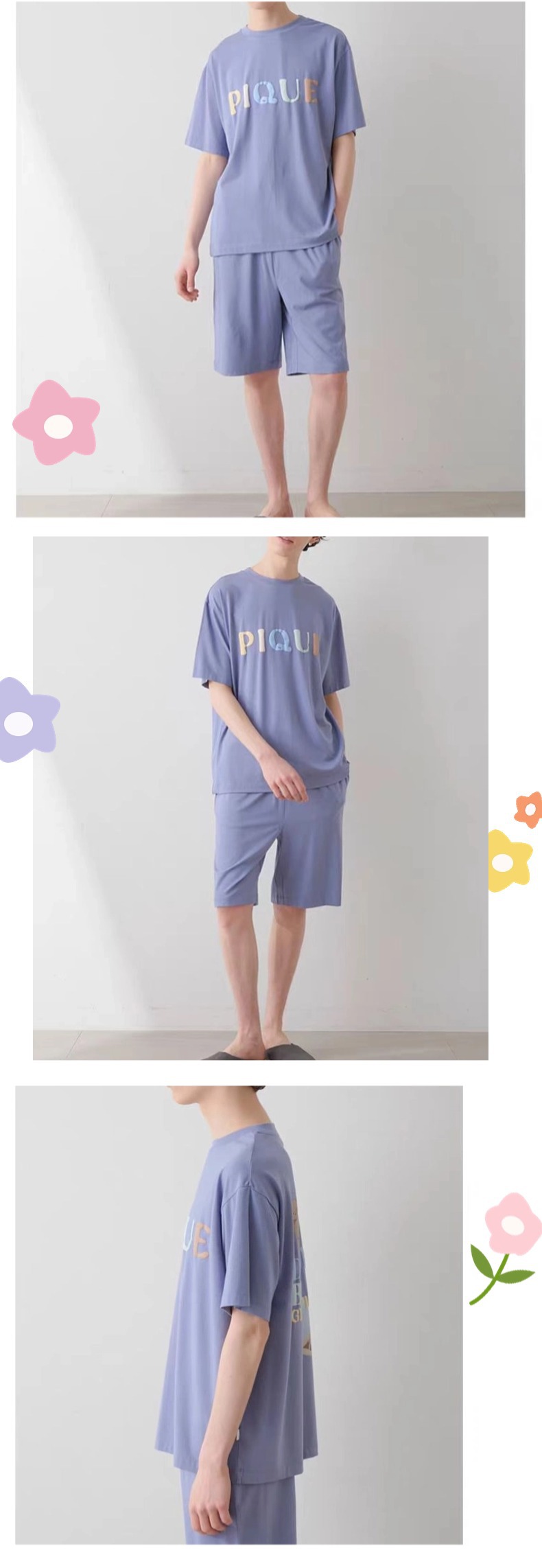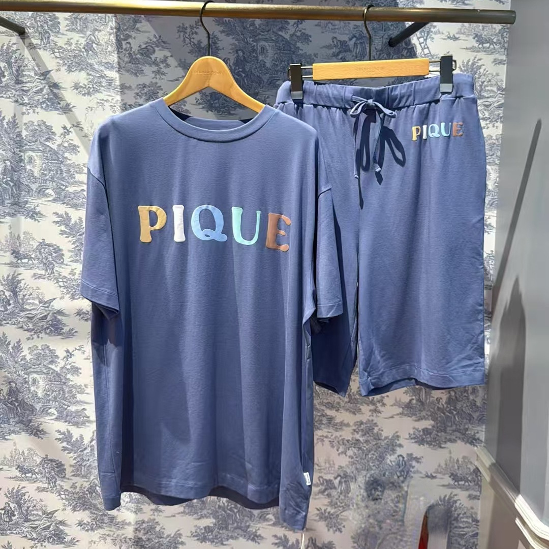 여름 느슨한 반팔 홈 의류 남성용 도넛 베어 모달 프린트 티셔츠 반바지 외부 착용스토어 가기