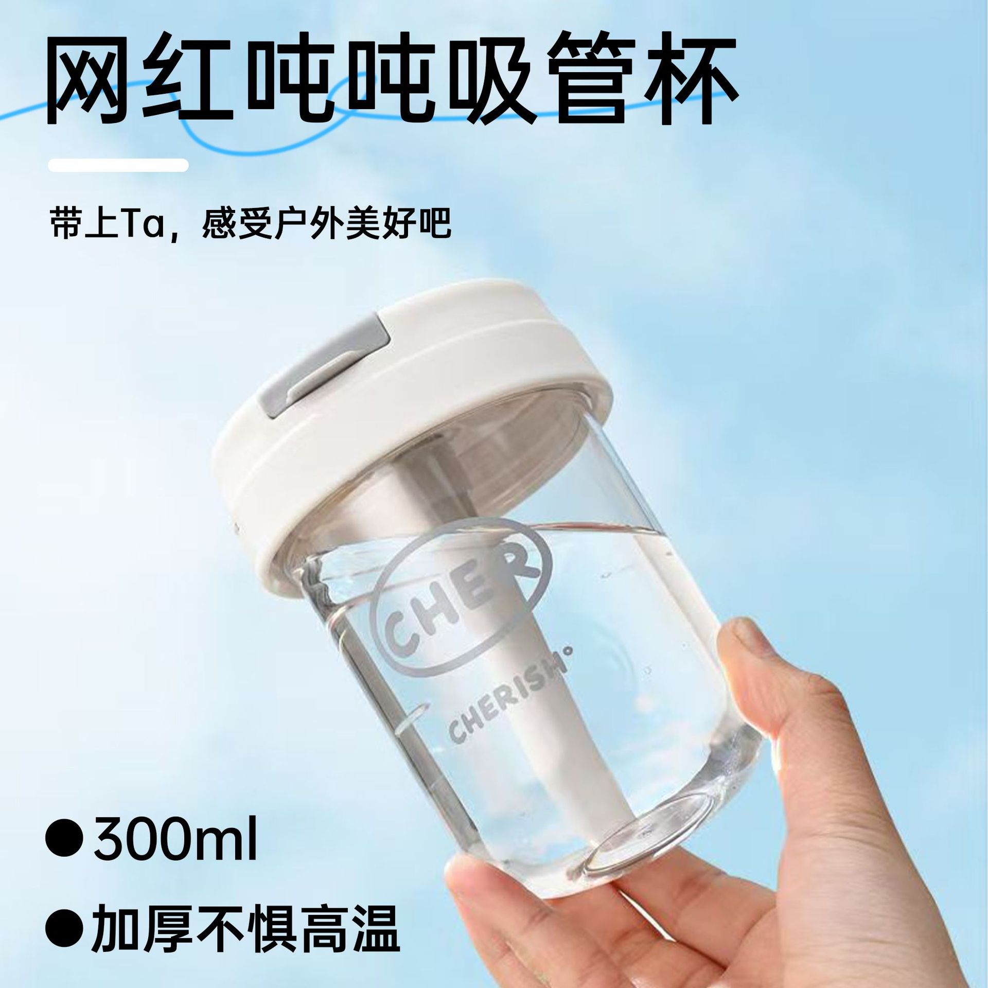 Ins 빨대가있는 인터넷 연예인 플라스틱 물 컵 여성 귀여운 휴대용 컵 어린이 마시는 컵 커피 컵 300m