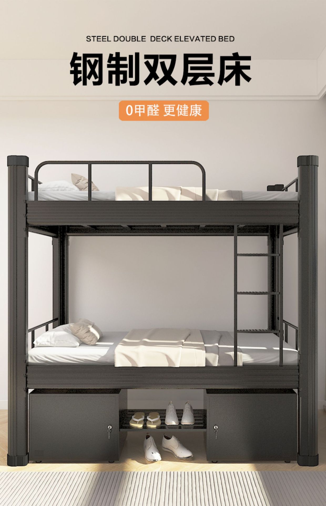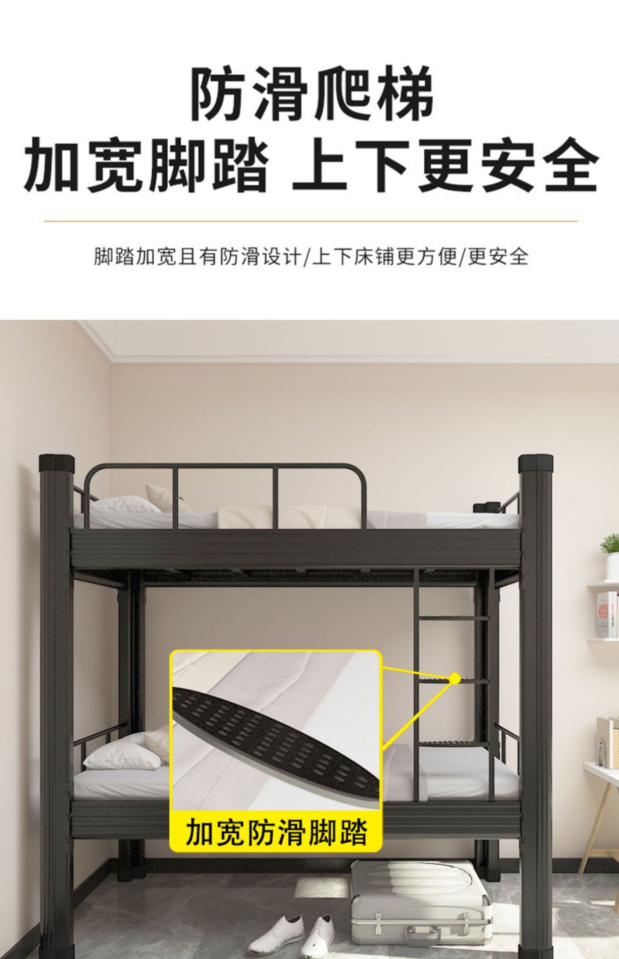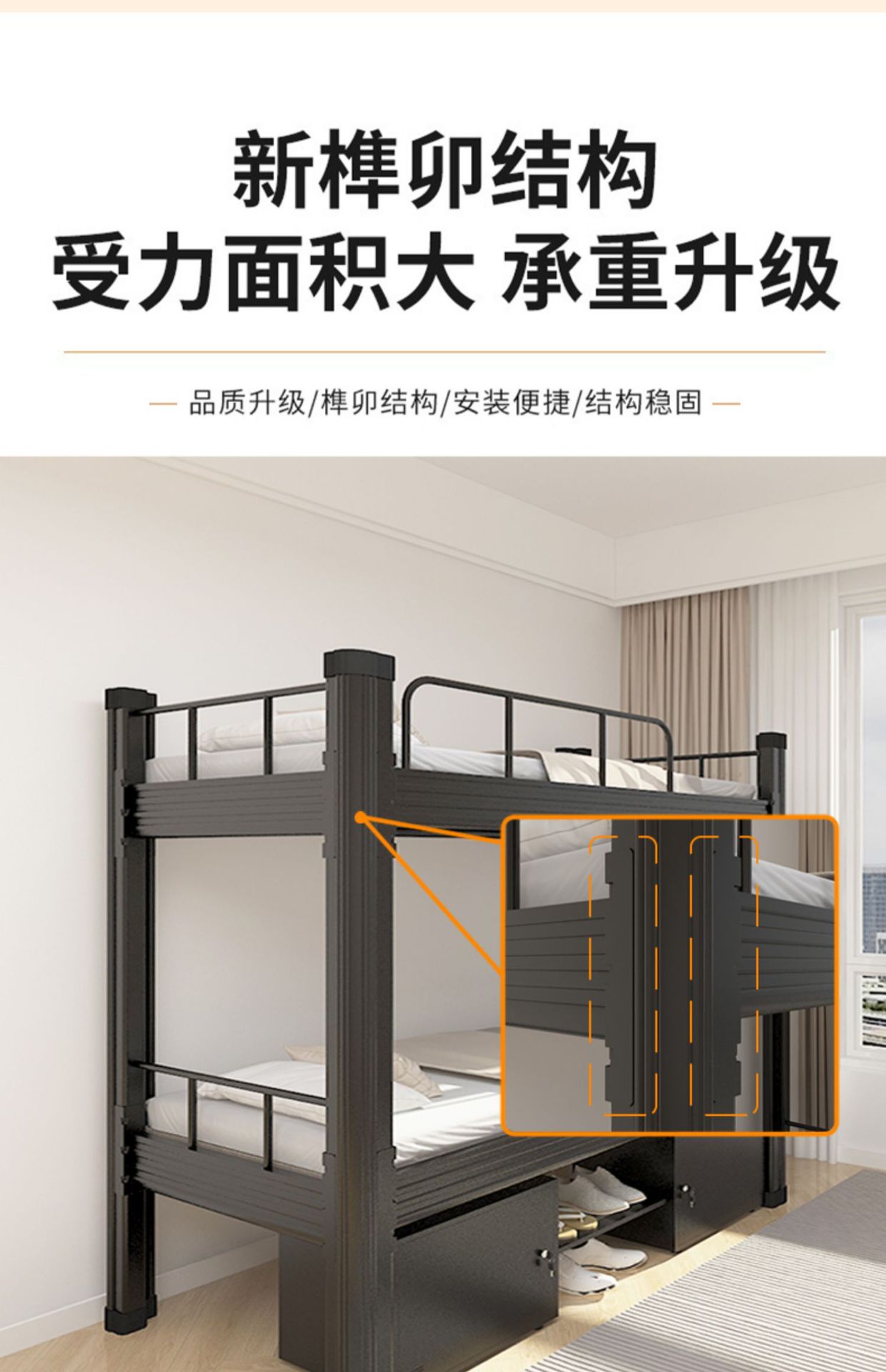 r^ 이층 철제 침대 이층 학생 기숙사 직원 아파트 침실 더블 침대 건설 현장 성인용 선반 침대 높낮이