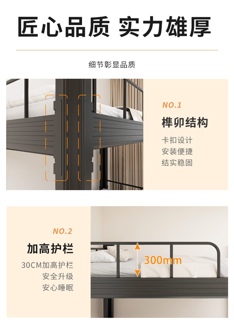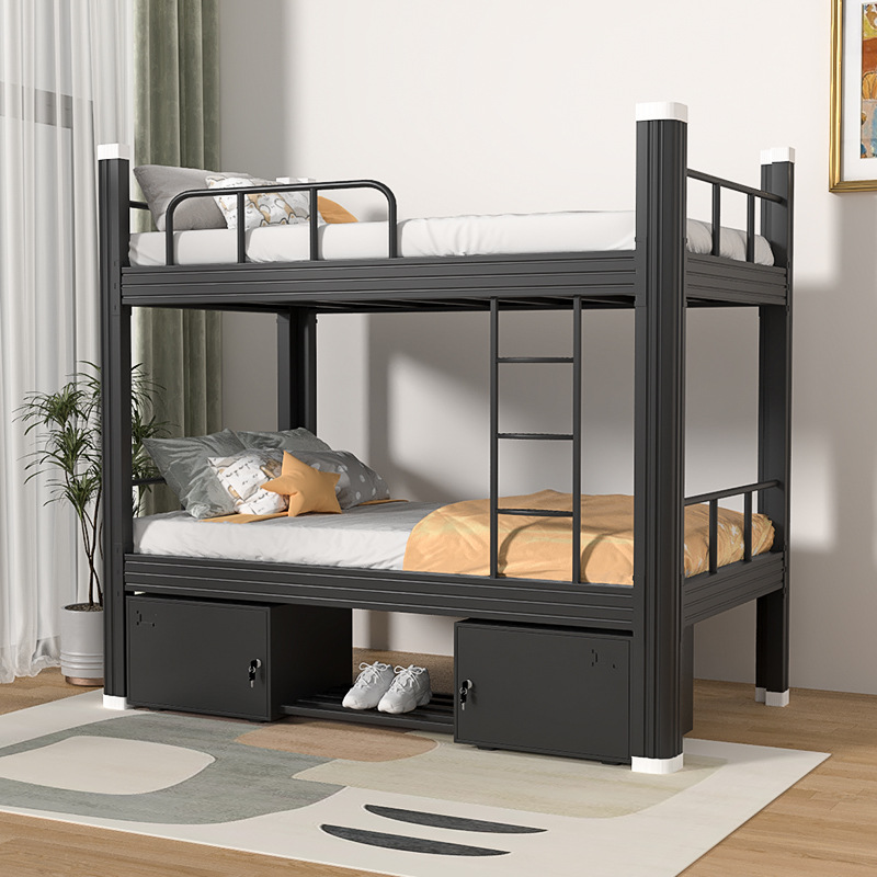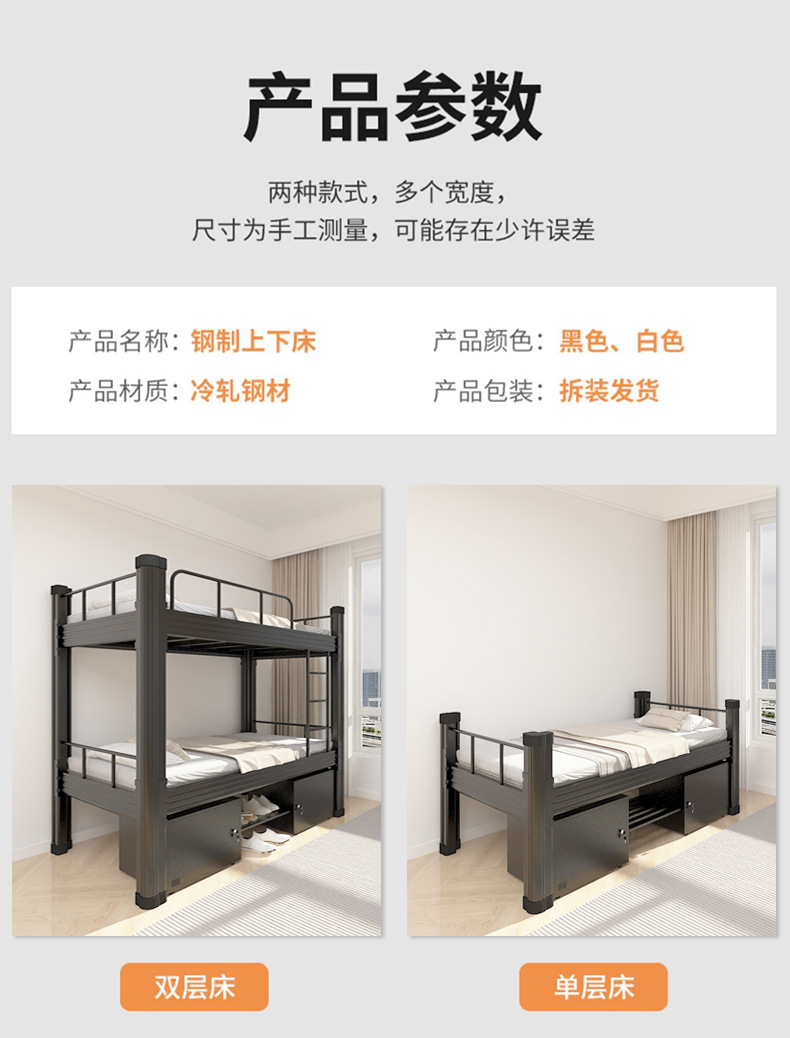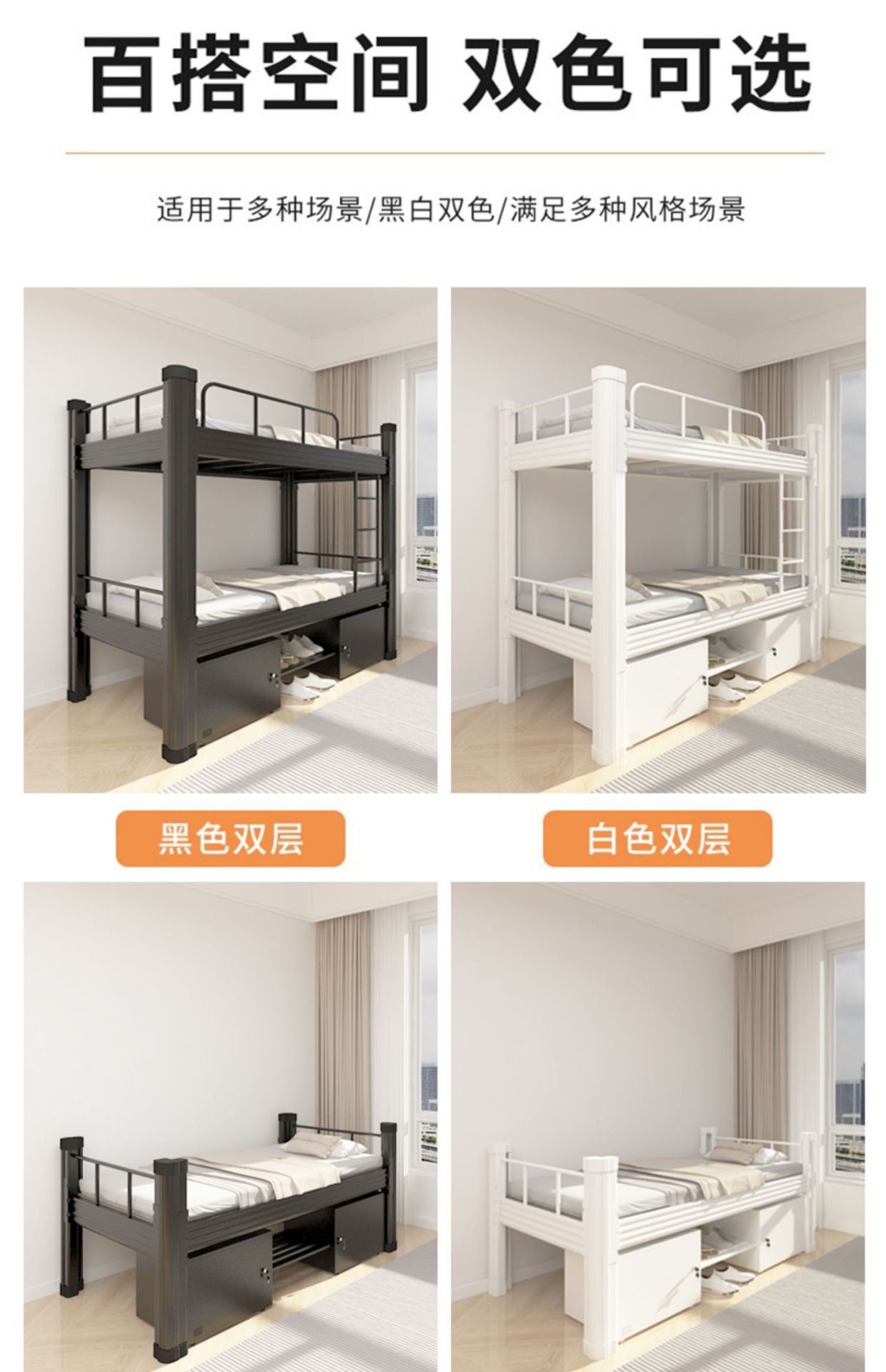 r^ 이층 철제 침대 이층 학생 기숙사 직원 아파트 침실 더블 침대 건설 현장 성인용 선반 침대 높낮이