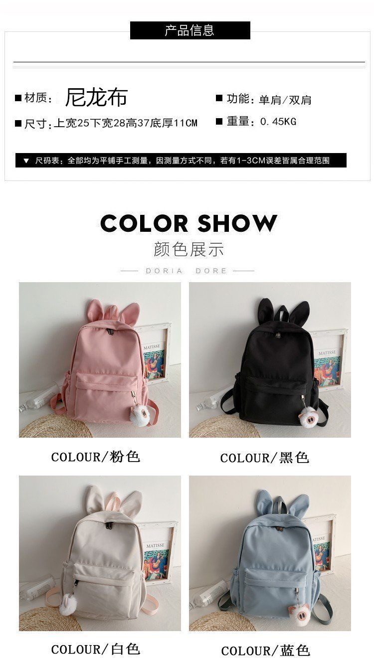 포켓몬 만화 귀여운 토끼 귀 배낭 초등학교 가방 남성과 여성을위한 패션 캐주얼 작은 학교 가방